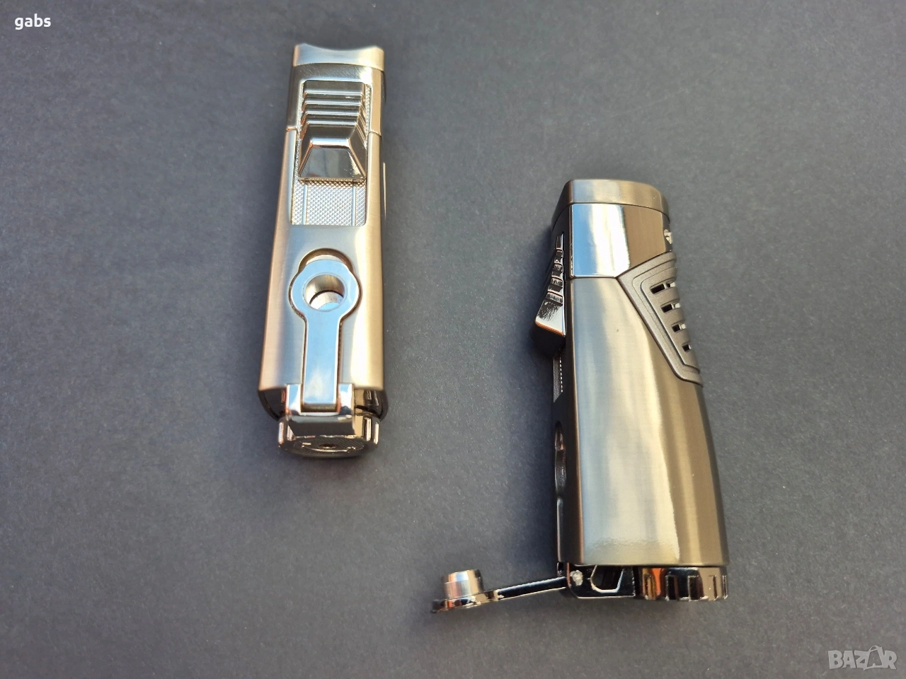 Стилна газова запалка за пури в два цвята-никел и черен никел.Изработена от метал с вграден пънч за пури.Горната част служи като поставка за пура.Ветроустойчив пламък тип троен джет.Пълни се и се регулира.Предлага се в подаръчна кутия.