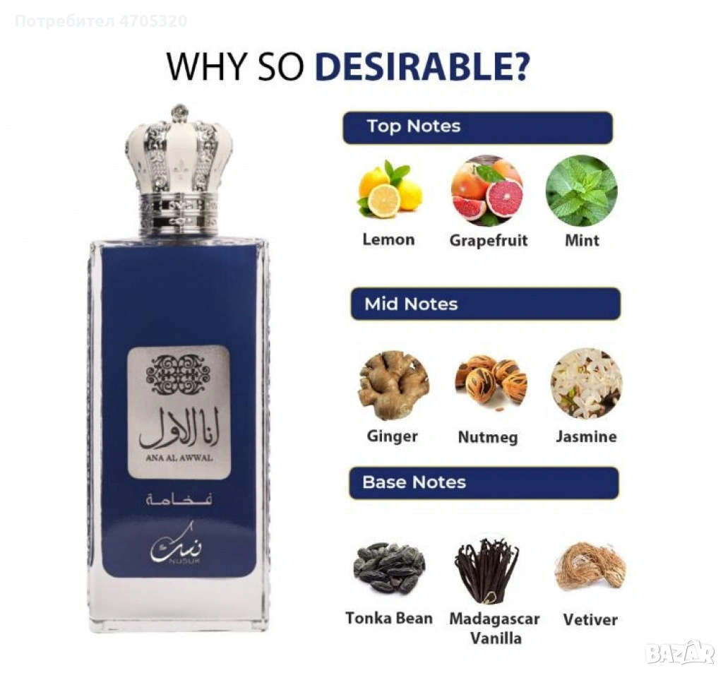 Парфюмна вода Nusuk Ana Al Awwal Blue – Луксозен аромат за мъже, 100 мл → Обява 53115119