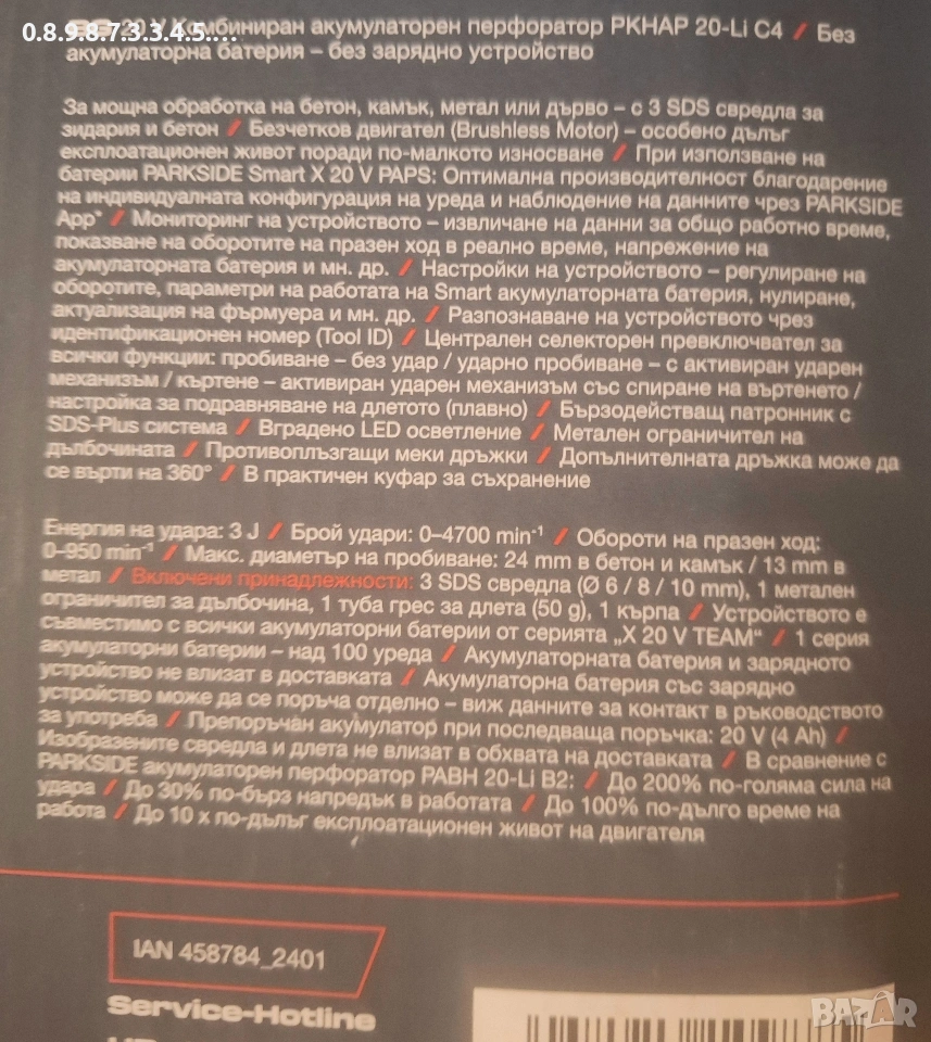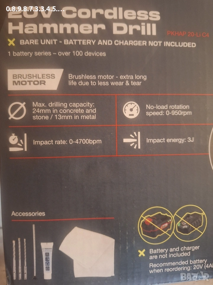 акумулаторен перфoратор на Parkside Performance 20V model PKHAP 20-li C4 в гаранция до 2029г. → Обява 53115196
