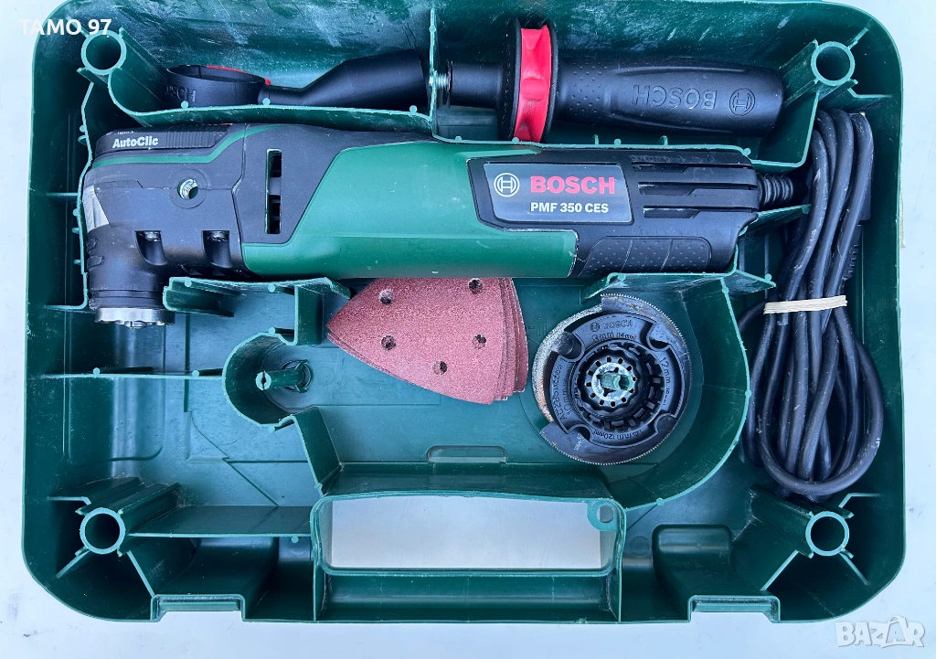 мултифункционален инструмент / реноватор на Бош с потенциометър за регулиране на оборотите в отлично визуално състояние и работи перфектно. Оригинално унгарско производство внос от Франция, продава се така както си е на снимките с 3 ножа, аксесоари и оригинален куфар. Пращаме с опция преглед и тест с куриерска фирма еконт може и лично предаване за гр. Шумен.