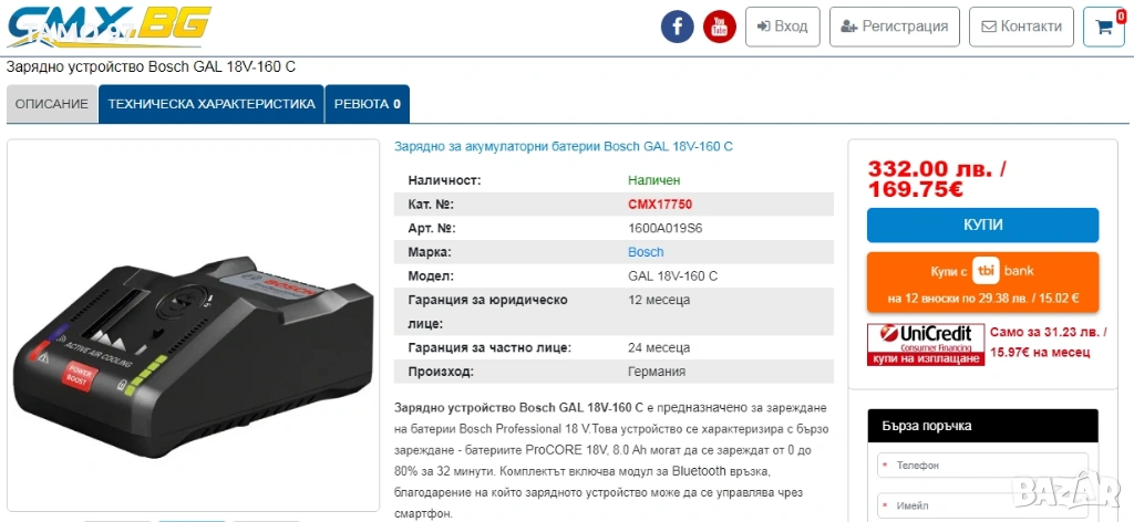 Продавам бързо зарядно устройство на Бош в перфектно визуално и техническо състояние, внос от Франция. Зарядното е най-бързото 18V зарядно сPower Boost режима зарежда батериите до 50% за 15 минути и 100% за 44 минути истава за батерии от 14.4V до 18V 16.0Ah.Пращаме с опция преглед и тест с куриерска фирма еконт може и лично предаване за гр. Шумен.