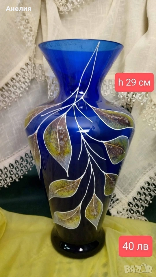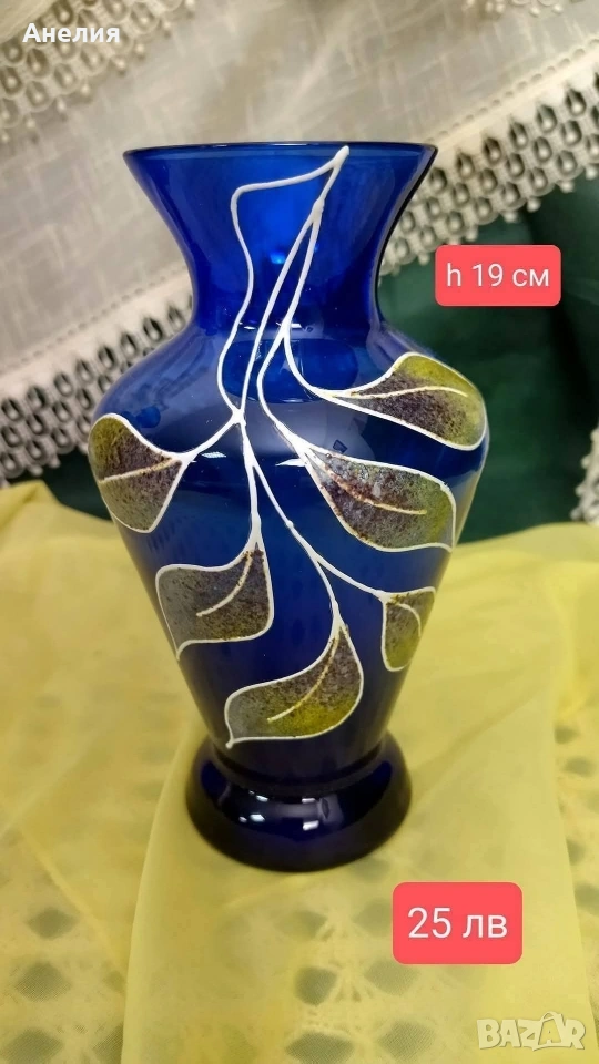 Вази от стъкло ръчно украсени кобалт цвят → Обява 53115431