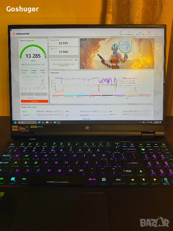 Продавам употребяван лаптоп Acer Predator Helios 16 (PH16-71), конфигуриран с: