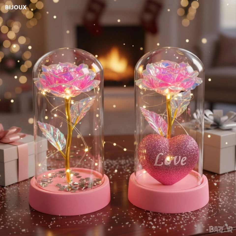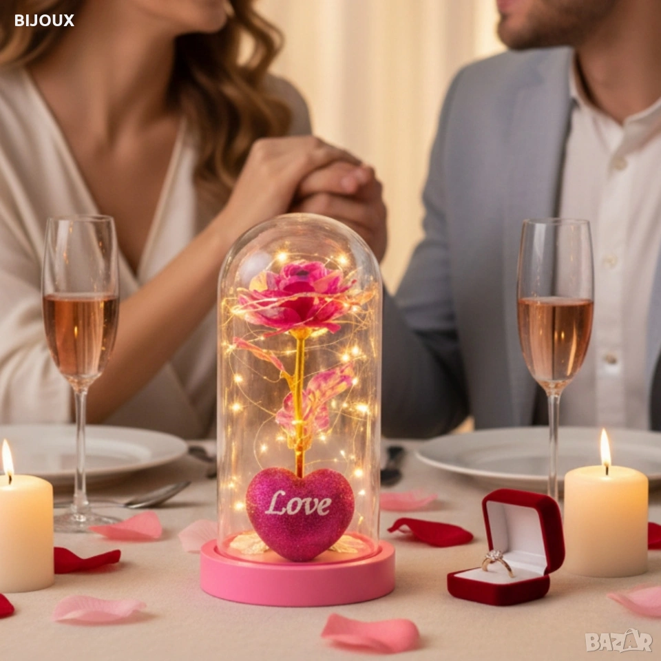 Светеща декоративна роза в купол - Светлина, романтика и любов