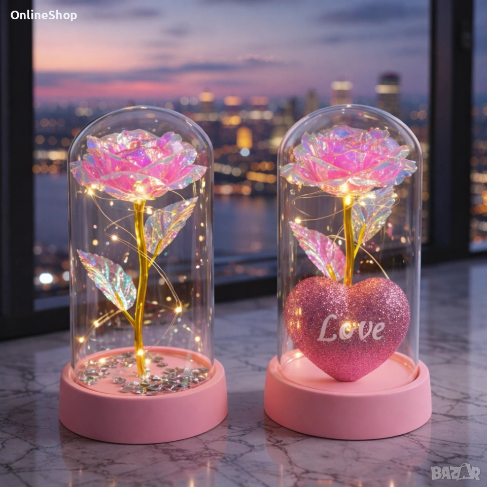 Светеща декоративна роза в купол - Светлина, романтика и любов