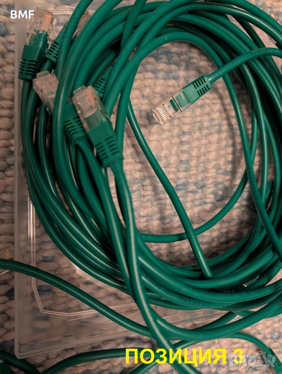 3. Лот неекранирани лан патч кабели марка ACNet, общо 12 броя (4х2.0m, 4х1.0m и 4х0.5m), зелени на цвят, Cat 5e - тествани при 1 гигабит трансфер и проверени с тестер за кабели, без счупени палчета на конекторите.