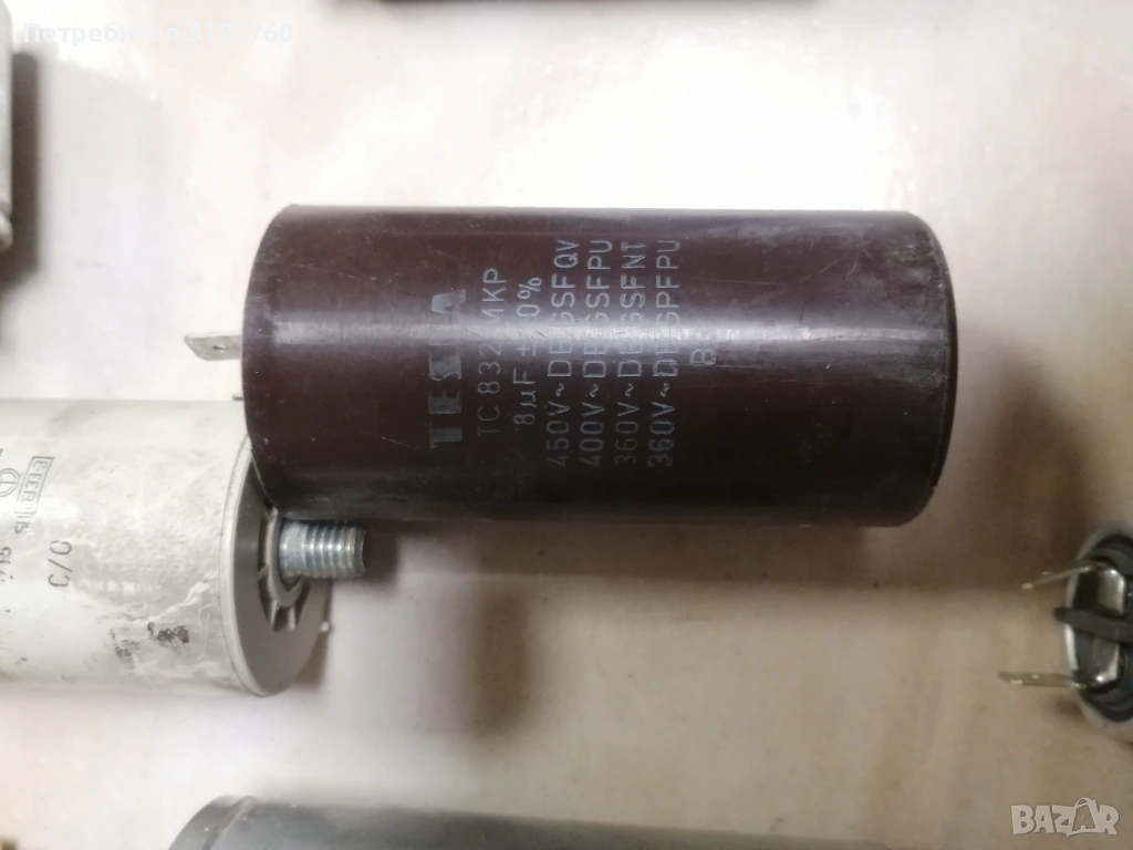 Това е кондензатор TC 832 MKP на TESLA, който обикновено се използва като работен кондензатор за мотори.