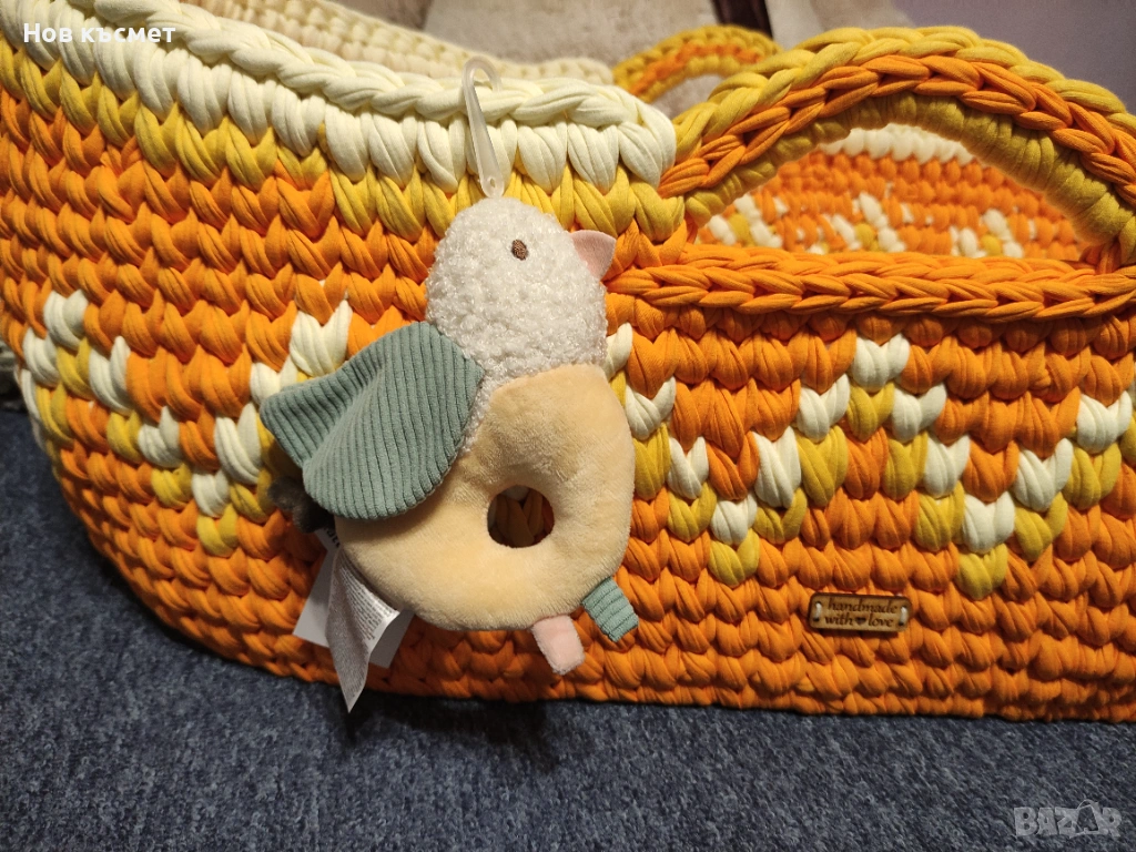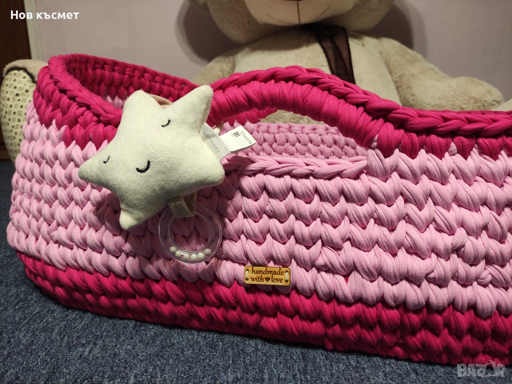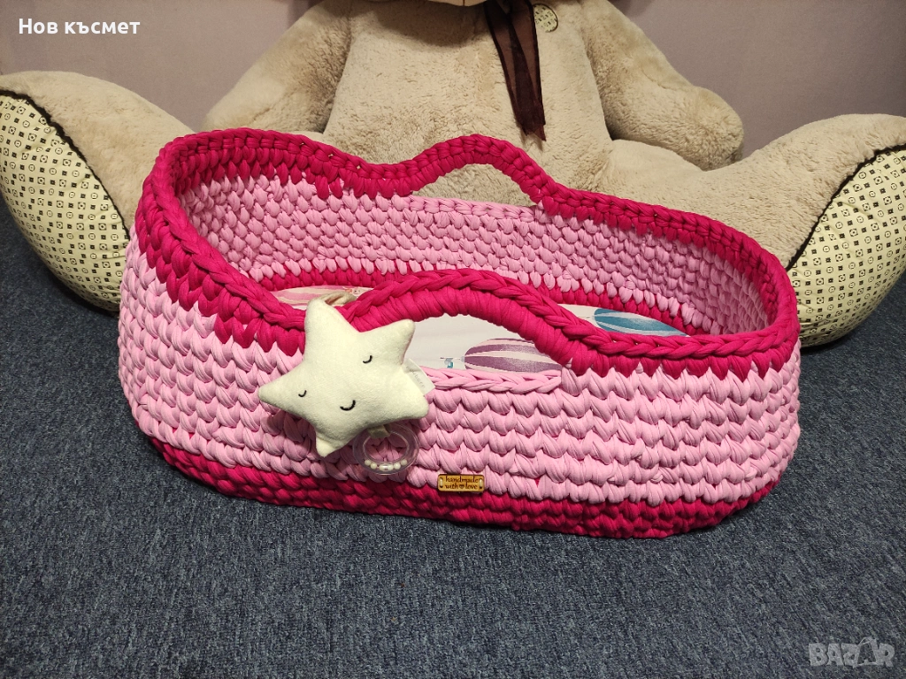 Много красиви бебешки кошчета ръчно изработени от 100% памучна прежда в красиви, свежи цветове. Оплетката е от двойна нишка. Две дръжки отстрани, за лесно пренасяне на кошчето и ниска козирка. Матраче с дебелина 3см от полиуретанова пяна, облечено в памучен плат. Твърда основа от МДФ с дебелина 6мм за максимална издръжливост!