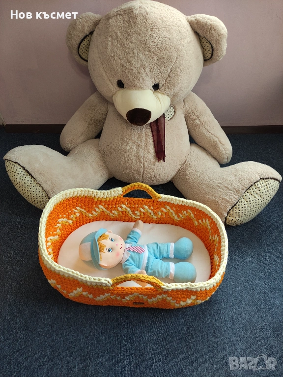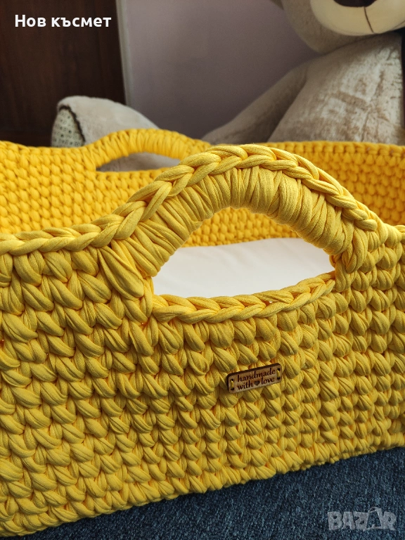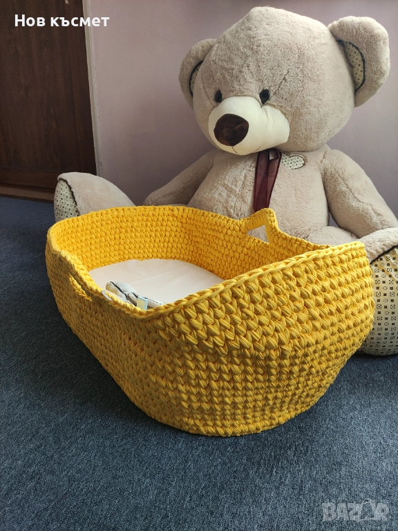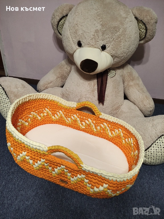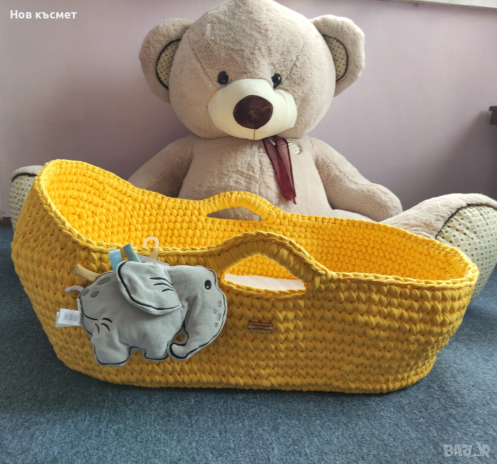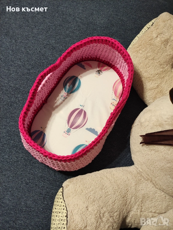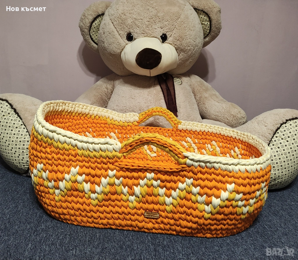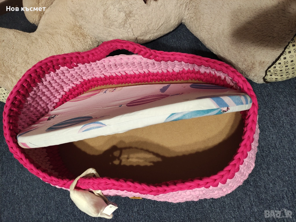 Бебешки кош за новородено, ръчно изработен, плетен кош, 70х40см, ново