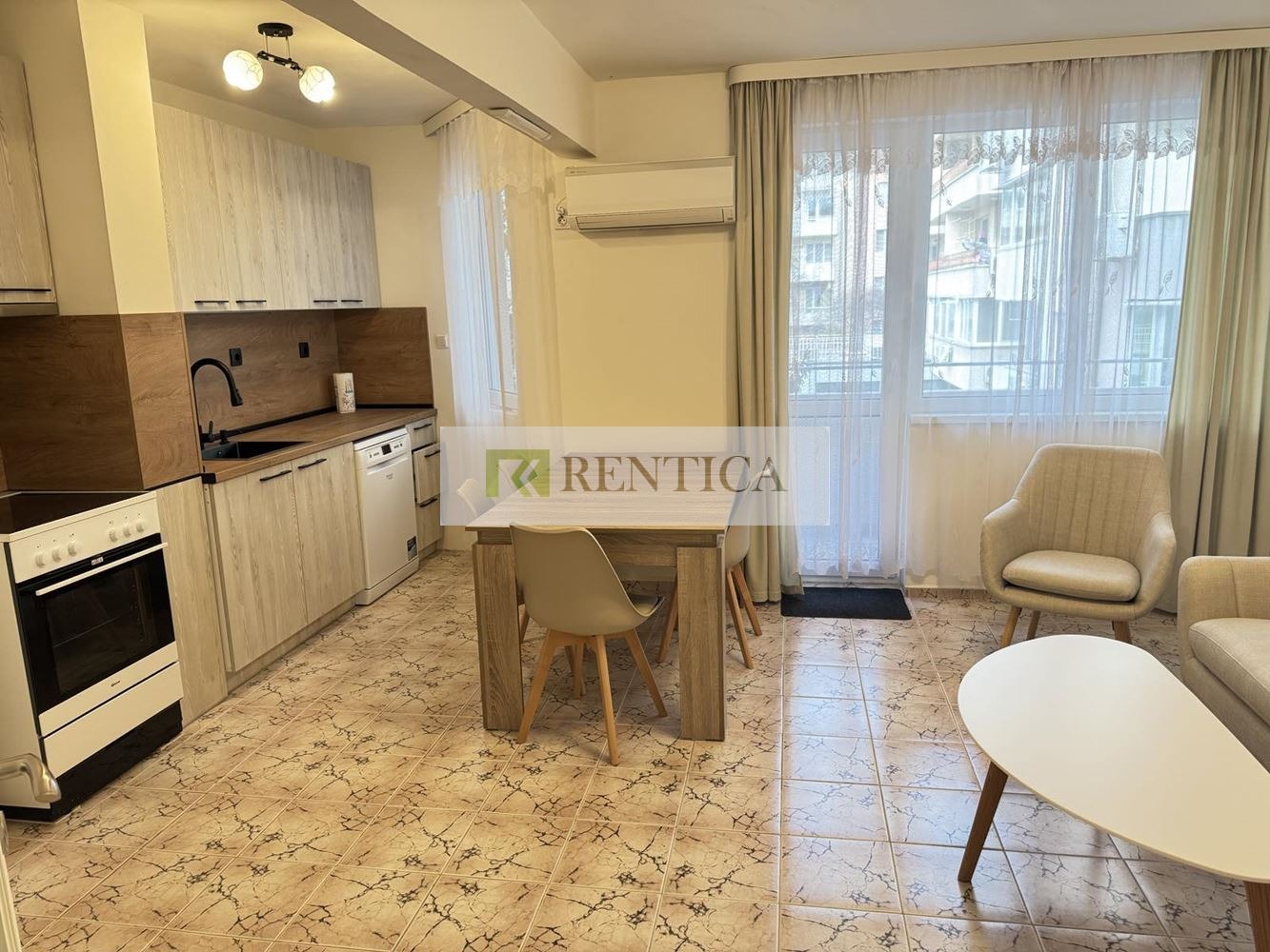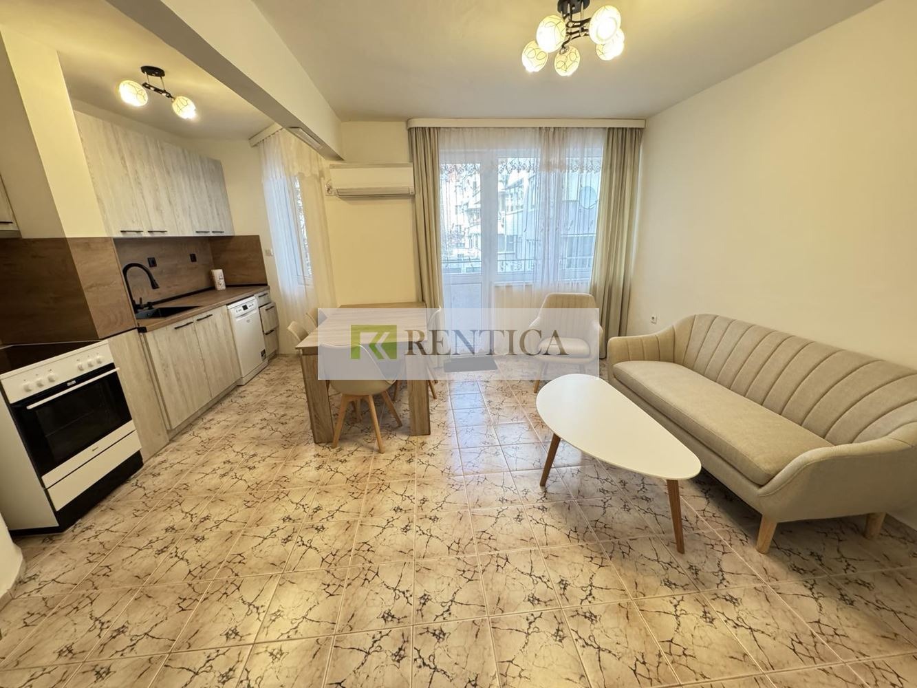 ОФЕРТА 8455 ✅Rentica.bg ви предлага под наем много добре обзаведен тристаен апартамент в района на Спортна зала и ВИНС. Жилището е след основен ремонт с чисто нови мебели, разположено на втори жилищен етаж и е в близост до Морската градина на града. Състои се от дневен тракт, обзаведен с мека мебел; кухня, напълно оборудвана с необходимата бяла техника за едно домакинство; две спални; баня с тоалетна, отделно тоалетна; и две тераси. Отдава се дългосрочно. Отоплението е с климатик. Свободен за нанасяне !!! МОРСКА ПАНОРАМА! Без домашни любимци.