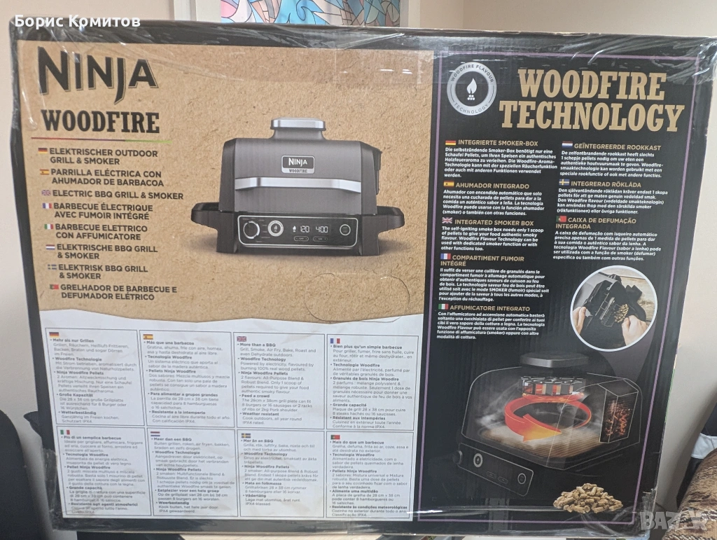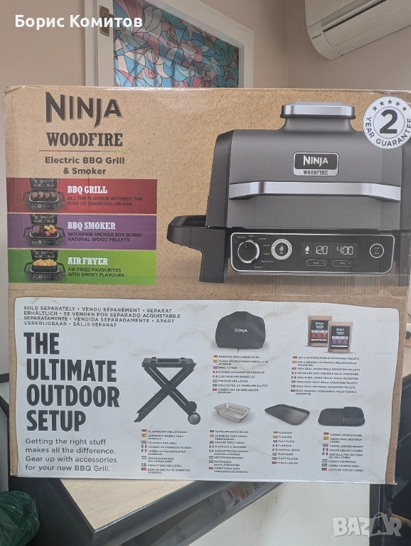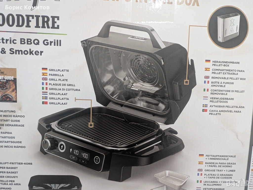 Ninja Woodfire OG701EU Електрическо барбекю за къмпинг с пушилня и фритюрник нов в оригинална опаковка / неразпечатан / .