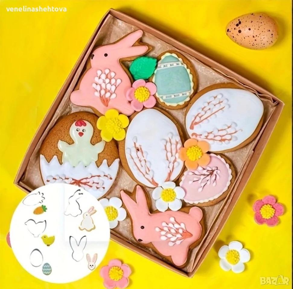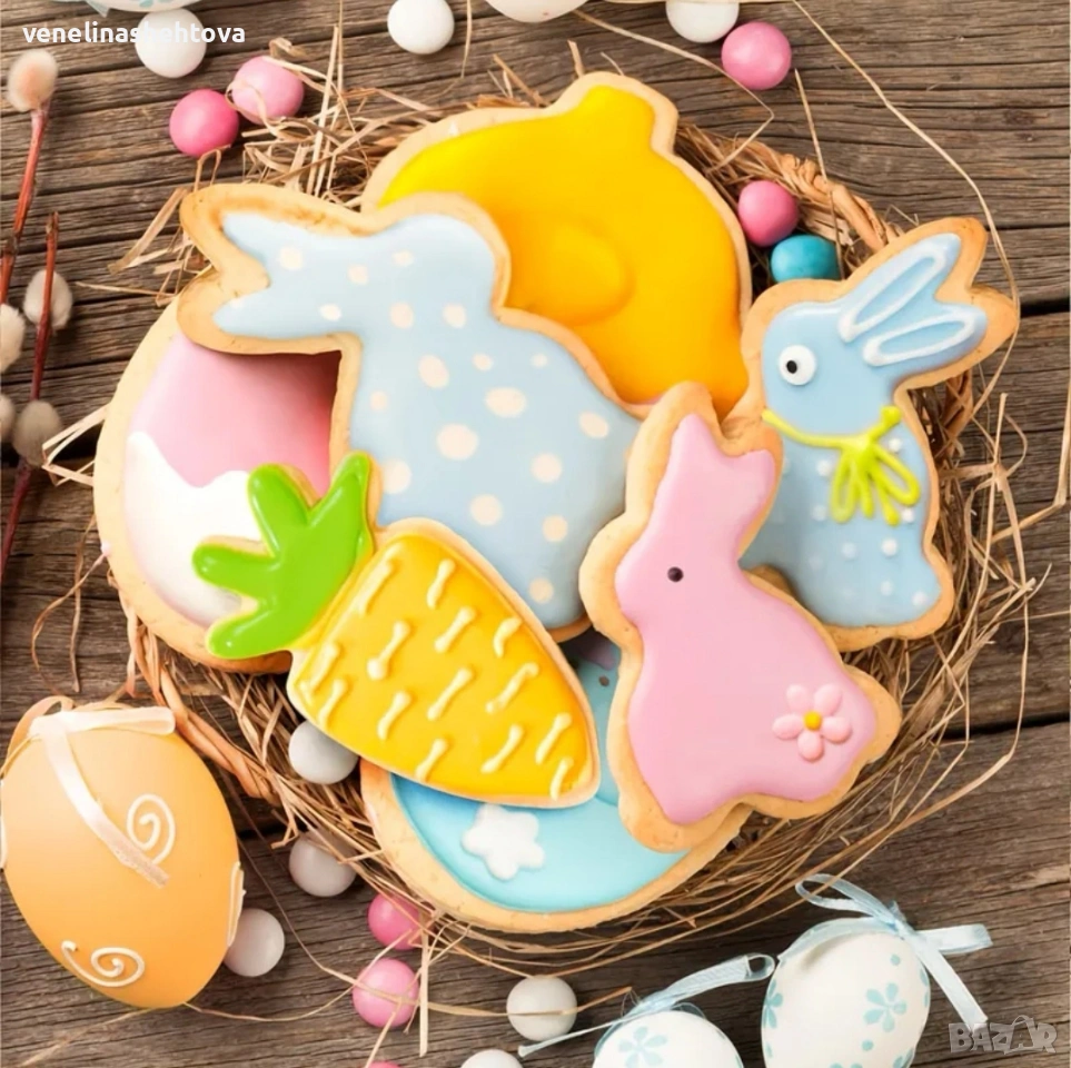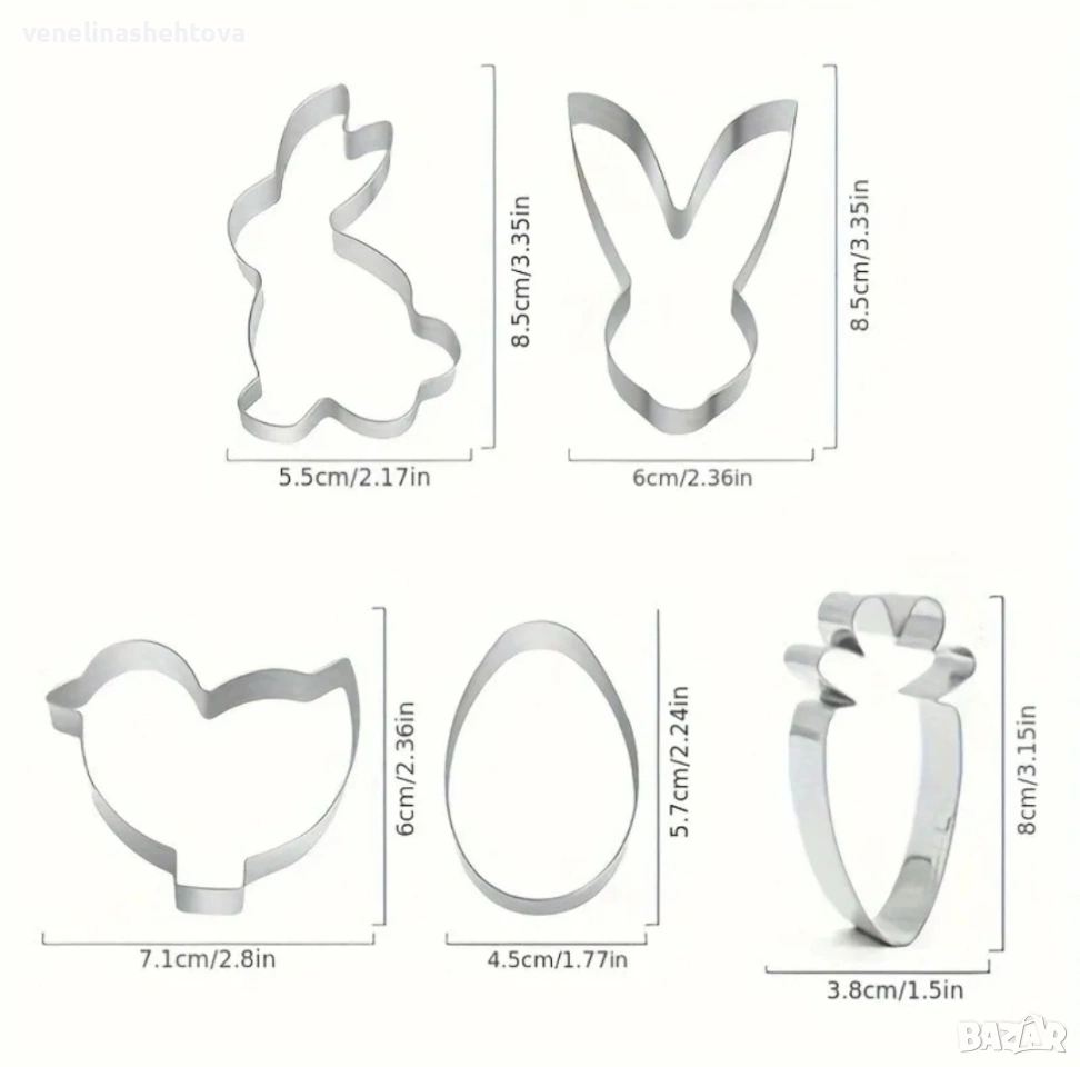5 броя зайче заек яйце пиле метални резци резец бисквитки тесто фондан декорация → Обява 53116926