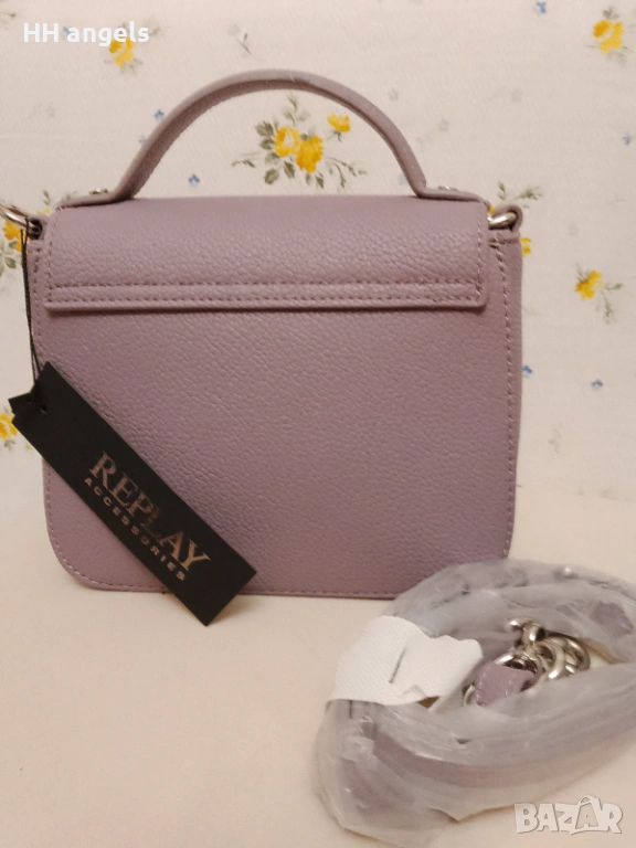 Replay чисто нова дамска чанта в цвят лавандула, с дълга кросбоди дръжка,с размери 22 см ширина и 17 см височина и 7 см дъно,закопчаване с магнитно копче.Цената е крайна и не подлежи на коментар.С етикети.