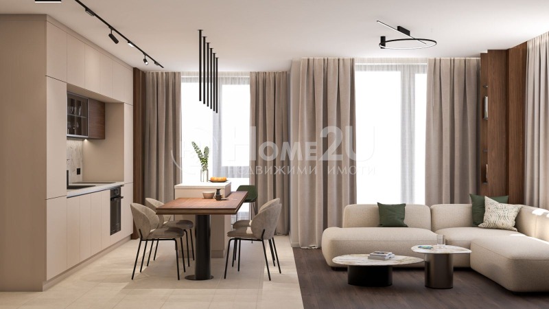 ПРЕД АКТ-16 !!! СРЕДЕН ЕТАЖ !!! КОМУНИКАТИВНА ЛОКАЦИЯ !!! ЮЖЕН !!! Представяме Ви слънчев непреходен тристаен апартамент в най-предпочитана част на Манастирски ливади- изток на комуникативно място, в близост до спирки на градски транспорт, големи вериги хранителни магазини, детски градини. Бърз и лесен достъп до околовръстен път и бул.България. Имотът е с площ от 104 кв.м., 88 кв.м. от които застроена площ. Апартаментът е разположен на четвърти жилищен етаж от девет в сградата и е ориентиран към вътрешната и дворна част на сградата, на югозапад. Разпределението е както следва: входно антре, кухня с трапезария и хол, две спални, две бани с тоалетни и тераса. За ваше улеснение прилагаме схема на разпределение на имота. Жилището предлага комбинация от функционалност и стил, като се намира в сграда с модерен дизайн и качествено изпълнение. Отоплението е предвидено да бъде на газ. Сградата е с издаден образец АКТ-15, а АКТ-16 се очаква началото на 2026г.