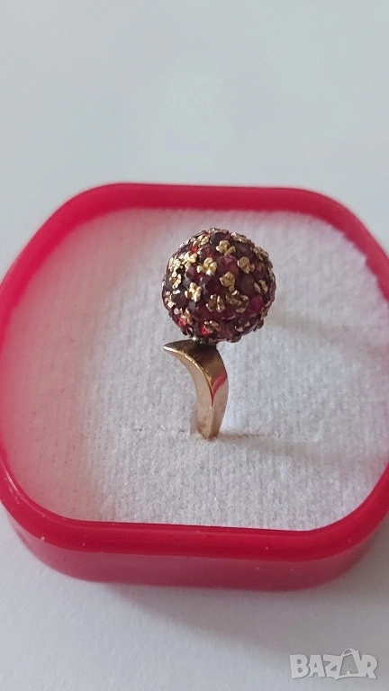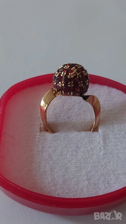 Златен пръстен с естествени гранати → Обява 53117684