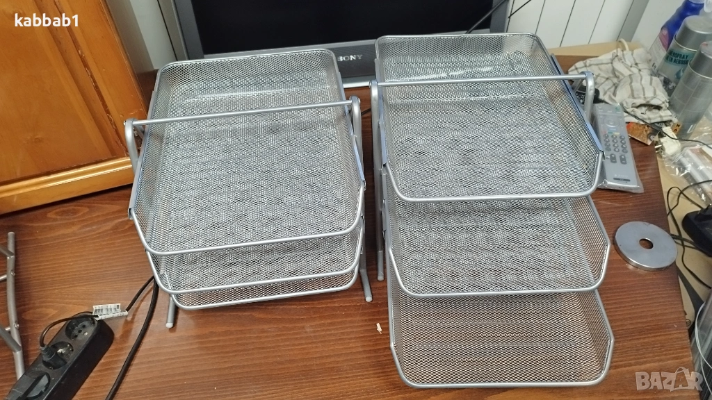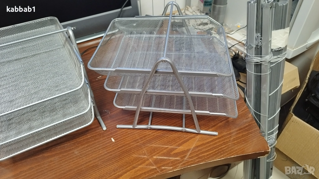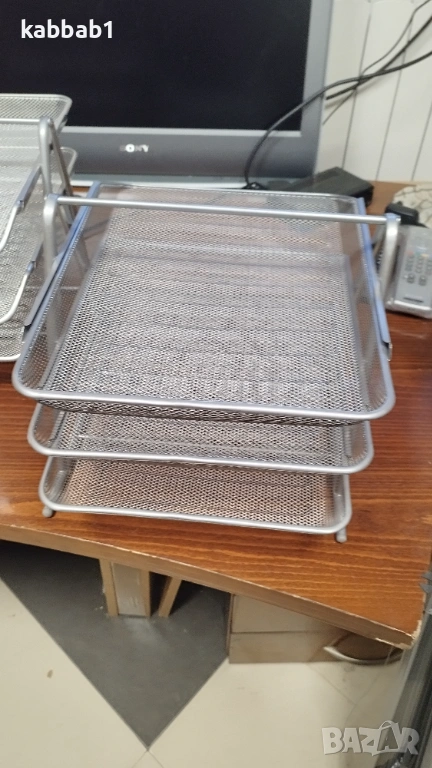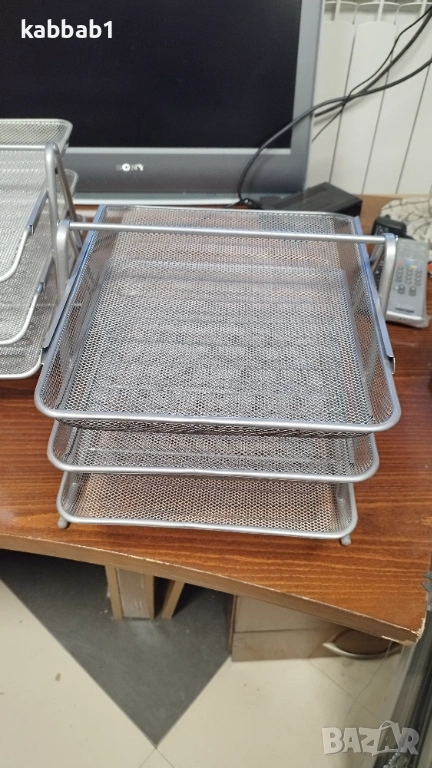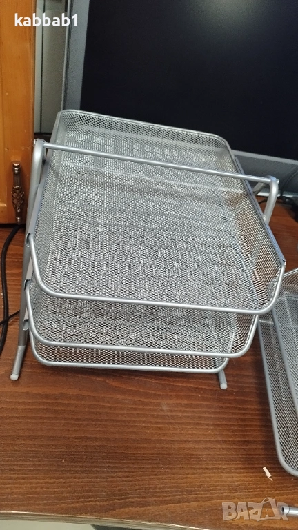 Продавам поставка за документи - Метален органайзер за документи с 3 рафта - 3 метални мрежести тави . Тавите са подвижни . Органайзерите са използвани но в добро състояние. Имам налични 4бр.