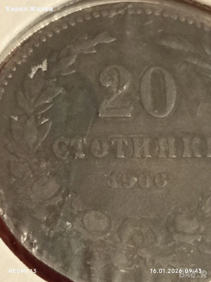 Монета 20 стотинки 1906г. Княжество България рядка за КОЛЕКЦИЯ 53099