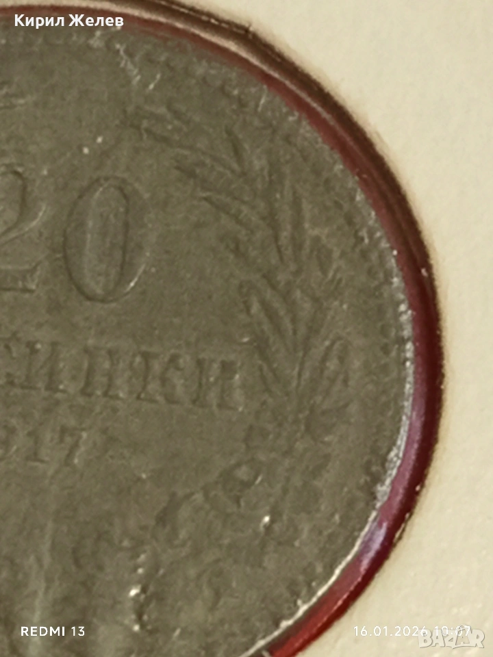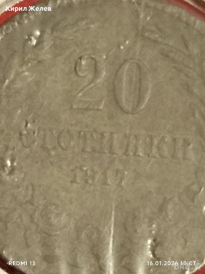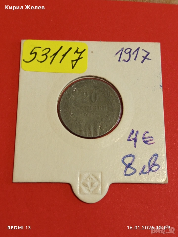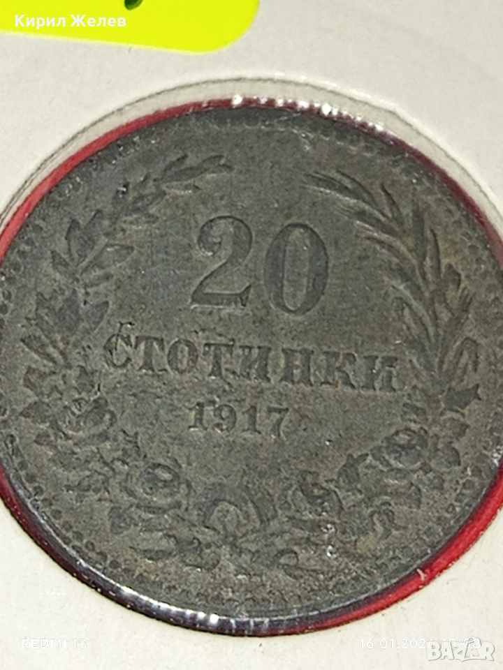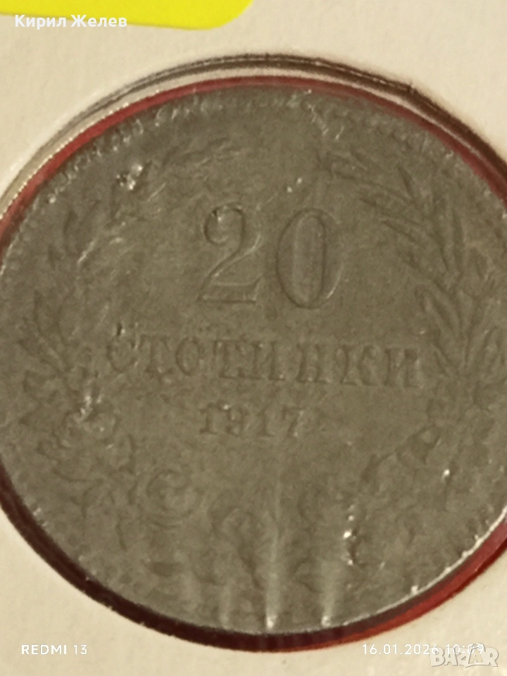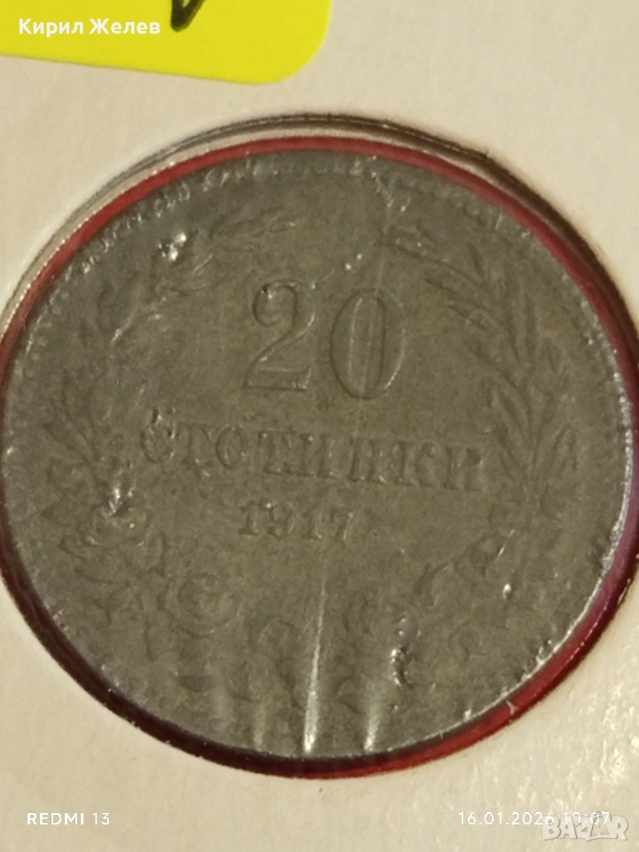 Монета 20 стотинки 1917г. Царство България Съединението прави силата 53117 → Обява 53118166
