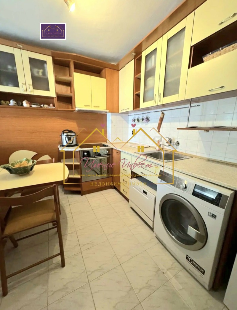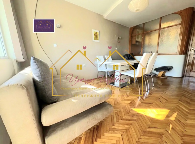 Недвижими имоти ИМЕНИЕ Инвест Ви предлага 2- стаен, монолитен апартамент, намиращ се в близост до I- во Районно управление. Имотът е с чиста площ от 58 кв.м. и се намира на етаж 2 от общо 5 в сравнително нова, монолитна сграда с добре поддържани общи части, асансьор и прилежаща маза. Апартаментът е изцяло южен, изключително тихо и спокойно, тъй като гледа към вътрешен двор, в много добро състояние, обзаведен с телевизори (Philips и LG) и конвекторни радиатори на реномираната норвежка марка ADAX, фурна + плот Cogneliano, хладилник Indesit, съдомиялна машина AEG и инверторна пералня + сушилня с термопомпа от най-висок клас AEG и чисто нов бойлер. Разпределението е от коридор, слънчева всекидневна (около 21кв.м.), кухня, спалня (14 кв.м.), остъклена тераса, баня и тоалетна отделно. Имотът е подходящ както за лично ползване, така и за инвестиция с цел отдаване под наем, тъй като се намира в един от най- хубавите райони, в непосредствена близост до множество магазини, училища, детски градини, аптеки и удобни спирки на градския транспорт.