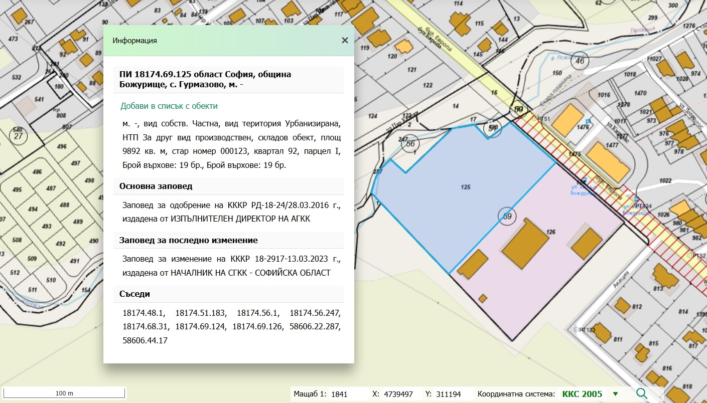Парцелът по Кадастрална карта е ПИ 18174.69.125 , като на Североизток има