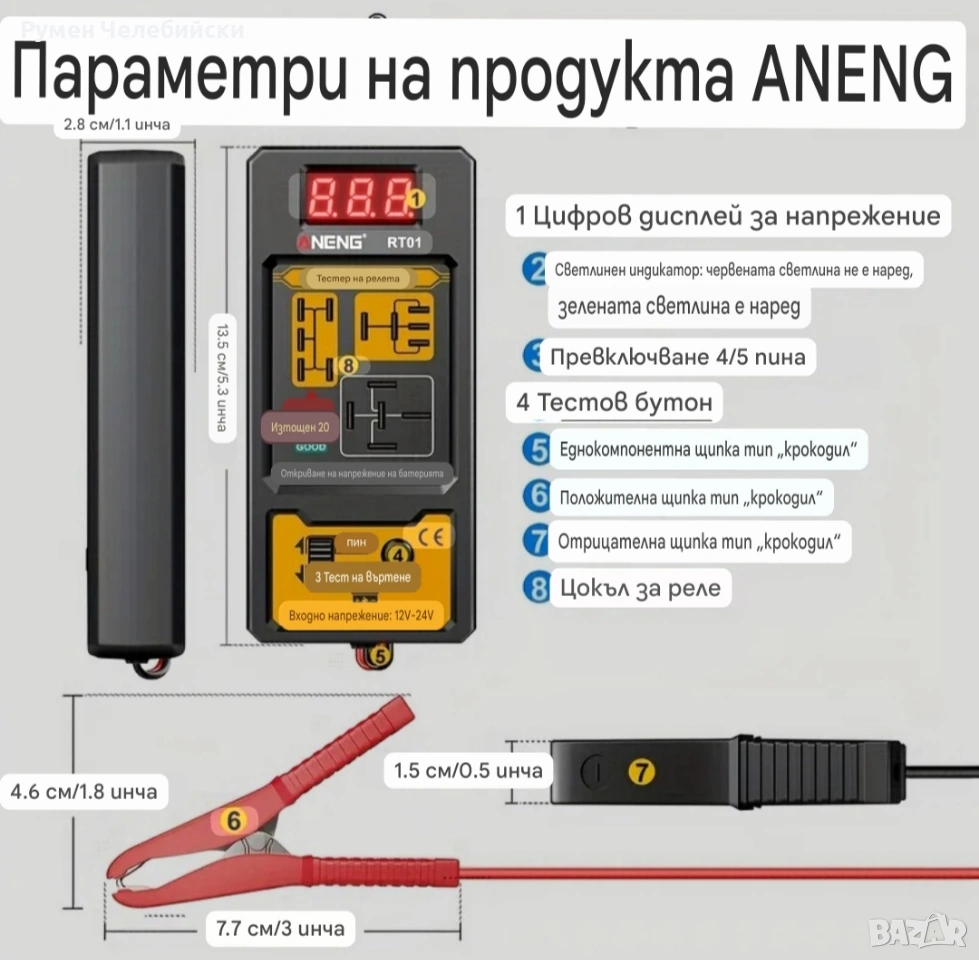 Тестер за Автомобилни Релета , снимка 1 - Друга електроника - 53118259 Тестер за Автомобилни Релета , снимка 2 - Друга електроника - 53118259 Тестер за Автомобилни Релета , снимка 3 - Друга електроника - 53118259 Тестер за Автомобилни Релета , снимка 4 - Друга електроника - 53118259 Тестер за Автомобилни Релета , снимка 5 - Друга електроника - 53118259 Тестер за Автомобилни Релета , снимка 6 - Друга електроника - 53118259 1/6