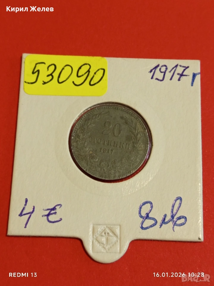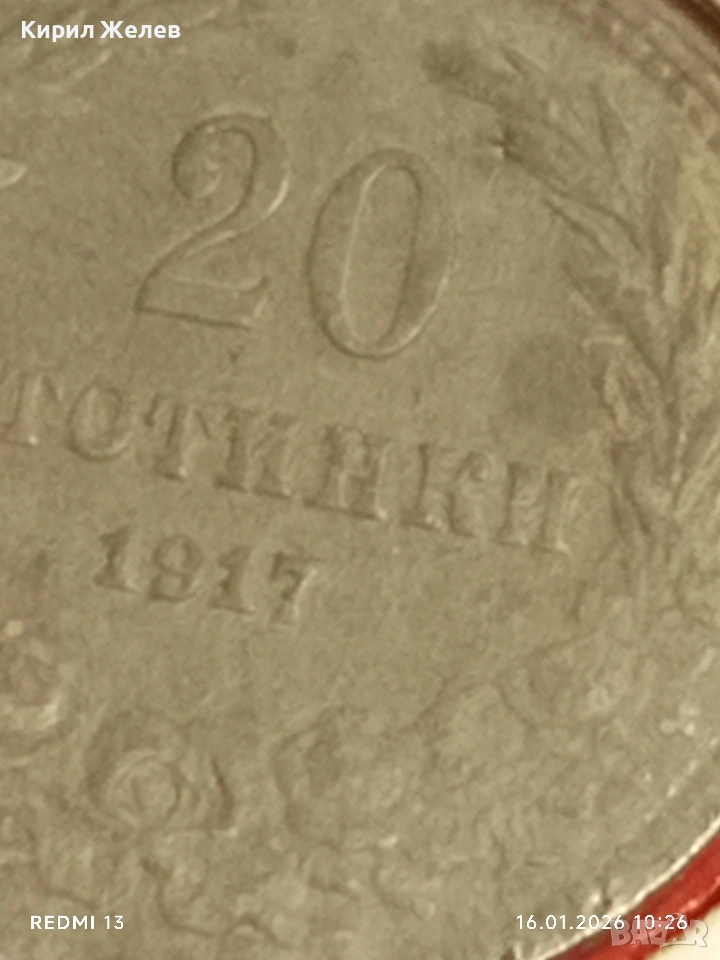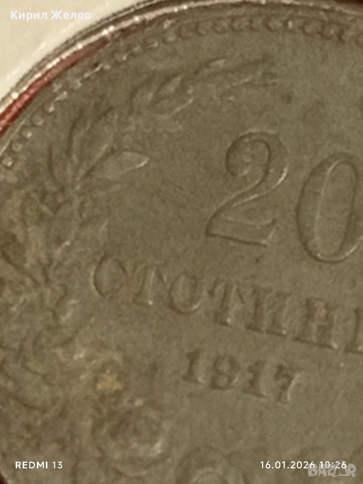 Монета 20 стотинки 1917г. Царство България Съединението прави силата 53090 → Обява 53118369