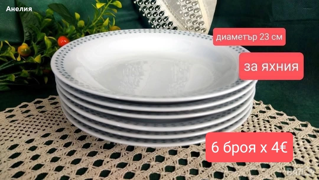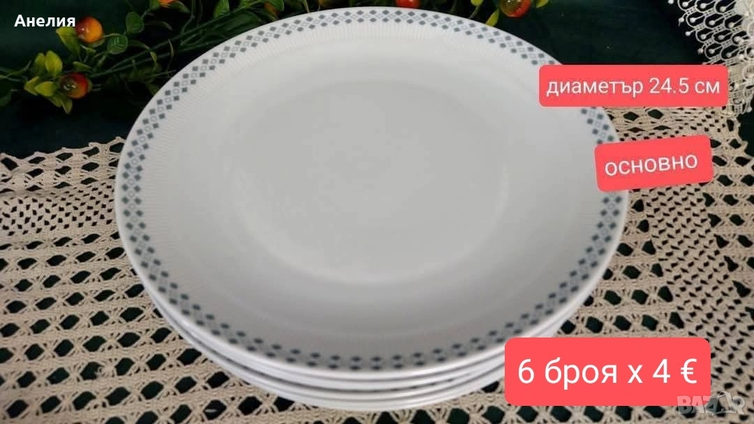 🚩6 чинии с диаметър 24.5 см за основно х 4.00€/7.82 лв
