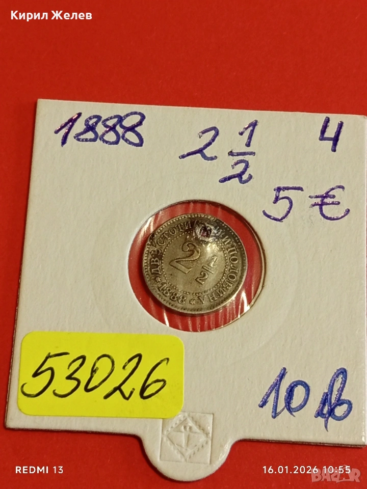 Монета 2 1/2 стотинки 1888г. Княжество България над стогодишна монета 53026 → Обява 53118762