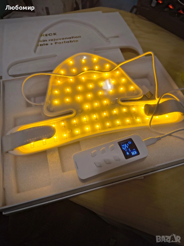 LED маска за светлинна терапия за шия и деколте