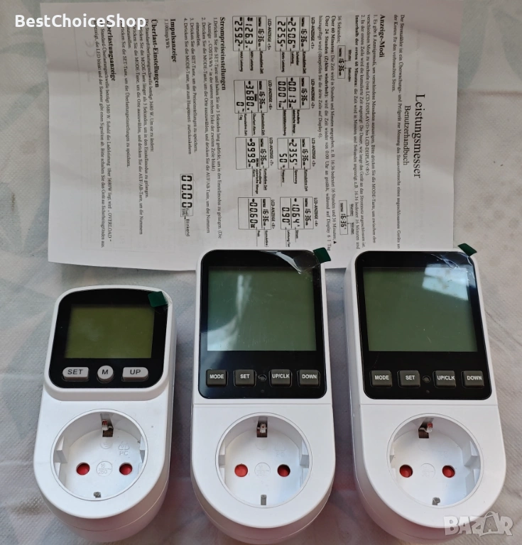 - Електромер (Ватметър), който се включва в контакта и се използва за наблюдение на консумацията на електроенергия от домакински уреди.