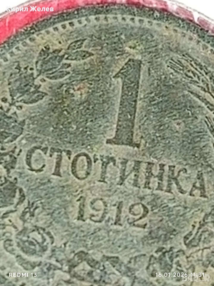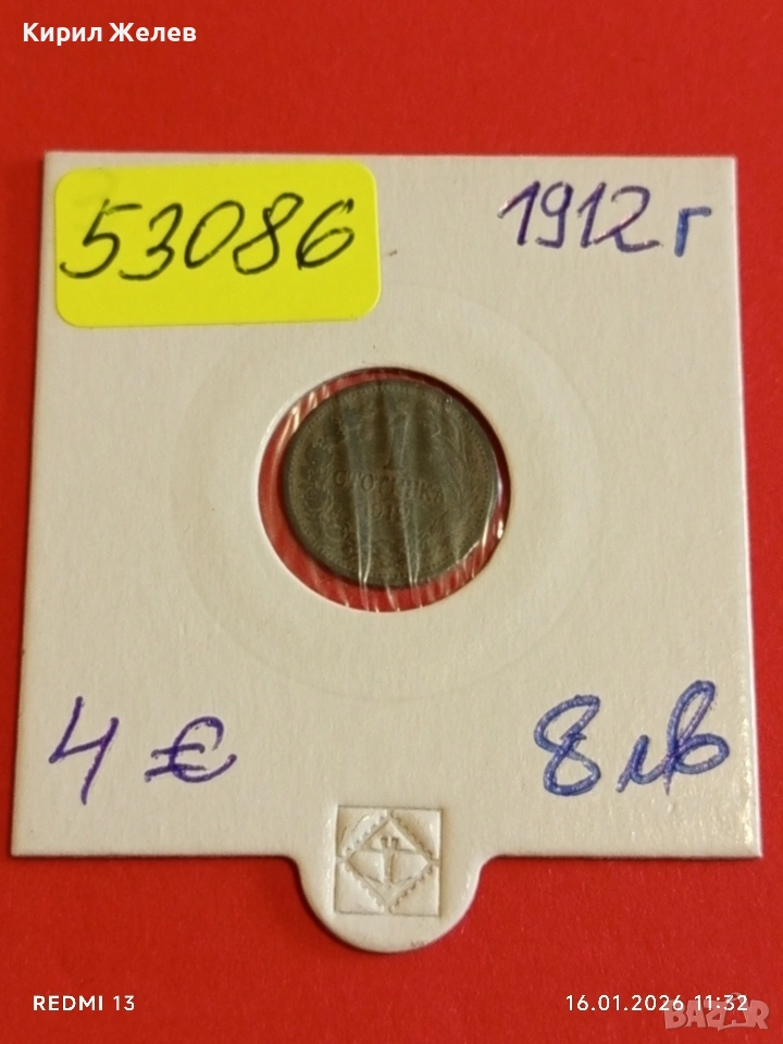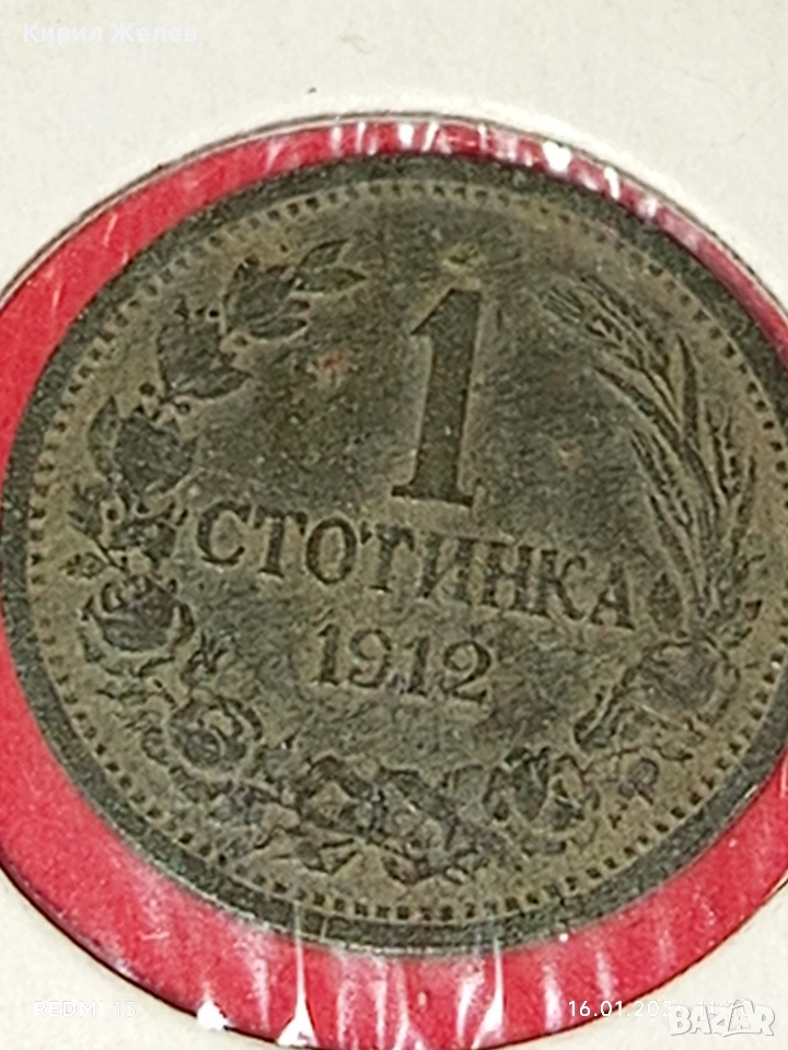 Монета 1 стотинка 1912г. Царство България рядка за КОЛЕКЦИЯ 53086 → Обява 53119191