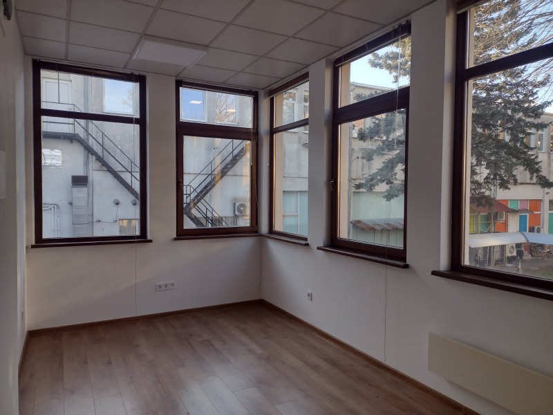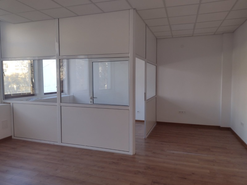 Имотът е след ремонт, на кабинетен принцип и разполага с шест самостоятелни работни помещения,кухненски кът за отдих,складово помещение и два санитарни възела.