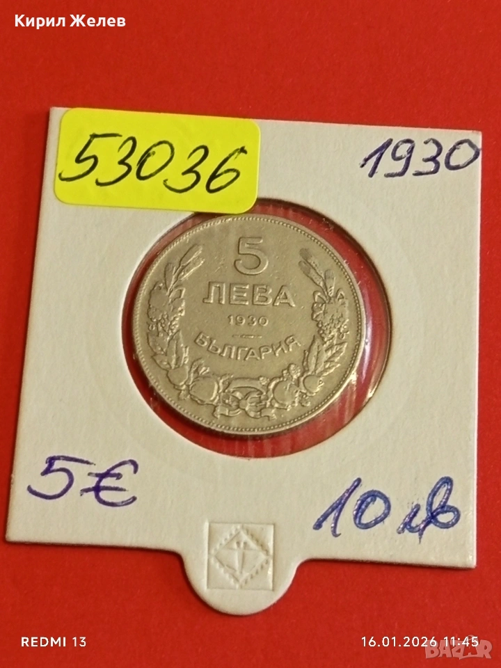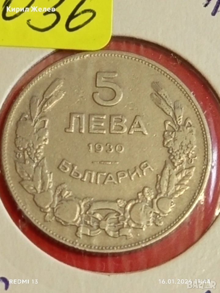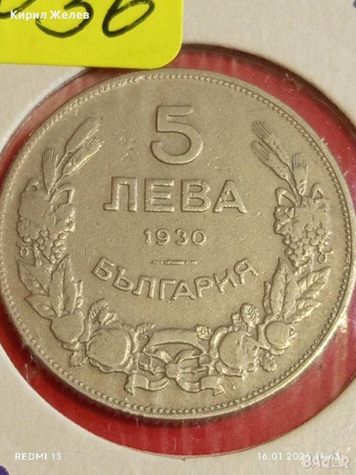 Монета 5 лева 1930г. Царство България Хан Крум за КОЛЕКЦИОНЕРИ 53036 → Обява 53119375