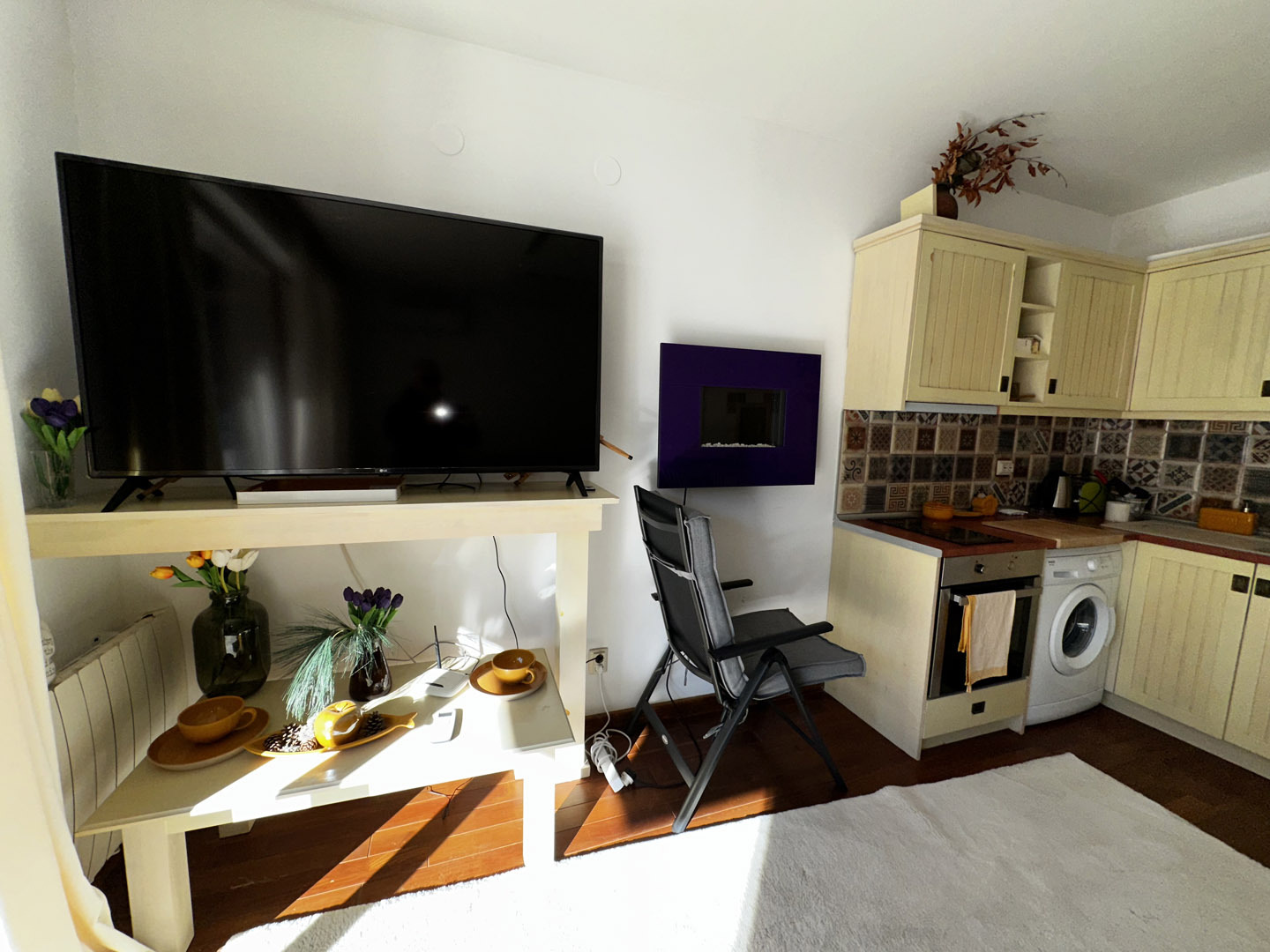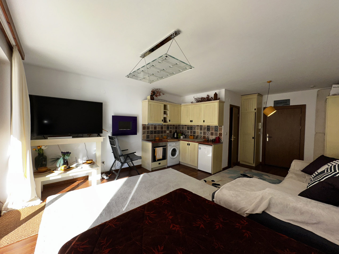 Студиото разполага със следните мeбели: кухня с шкафове и котлони, пералня и хладилник.