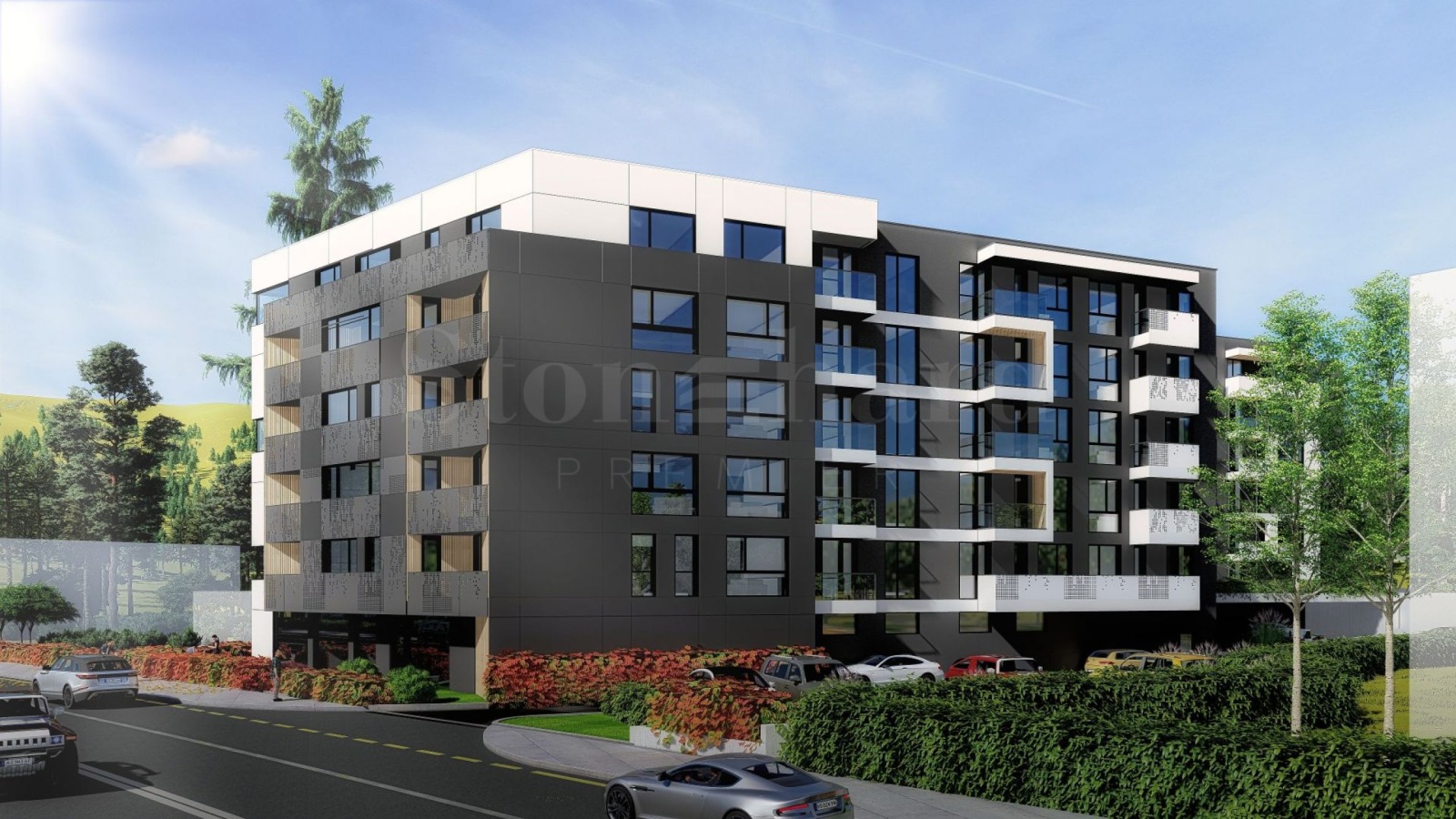 Сградата е организирана в две секции - блок 1 и блок 2, разпределени на 6 нива, които разполагат с магазини на ниво партер и жилищни имоти от типа двустаен, тристаен и четиристаен апартамент. Жилищата са с просторни помещения и функционални разпределения, а благоприятните им изложения на изток/запад и юг осигуряват както изобилие от естествена светлина, така и прекрасни гледки към 'Горна баня' и Витоша. Паркирането е решено с паркоместа в подземен гараж и паркоместа на терен.