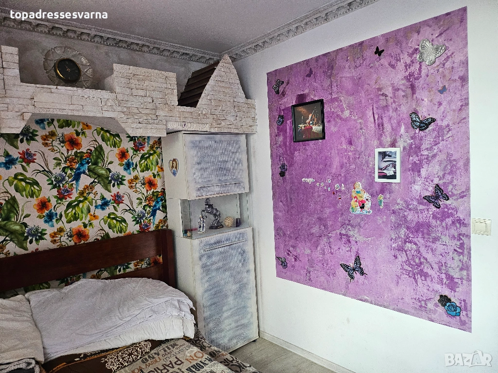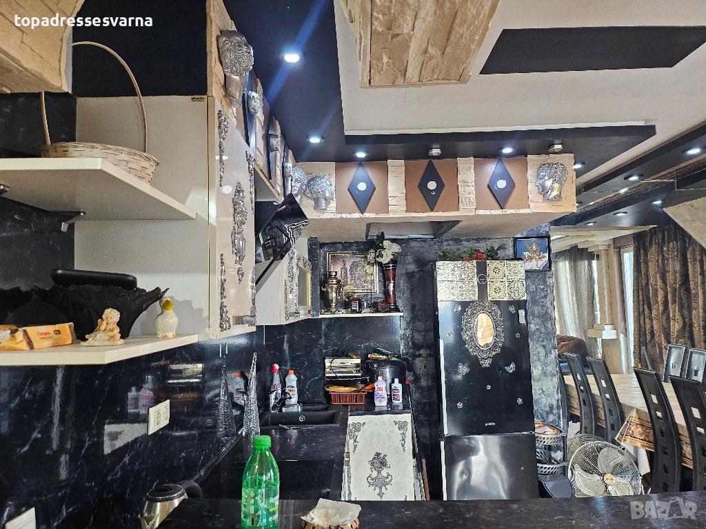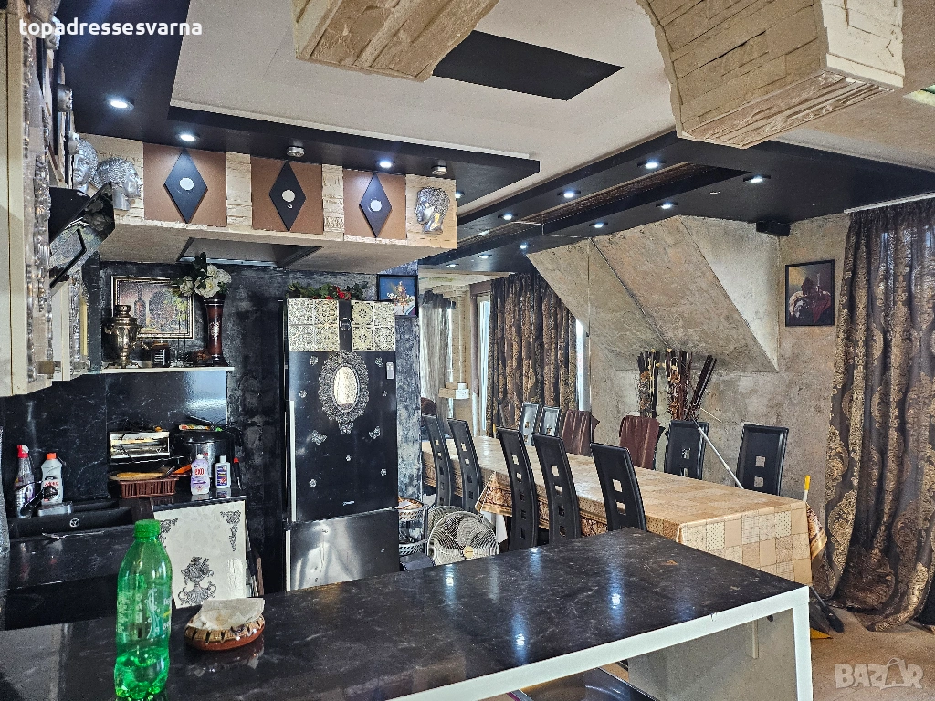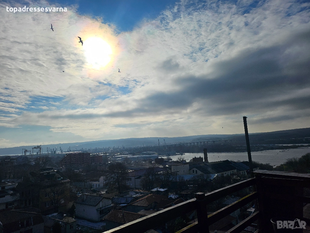 ,, Веста Имоти” ООД предлага отличен просторен и светъл апартамент, разположен в близост до фабрика Христо Ботев. Мезонетът заема горните етажи на модерна, добре поддържана сграда със съвременен архитектурен дизайн. Високи прозорци, просторни тераси,като същевременно осигуряват на обитателите уединение и изключителна гледка към Варненското езеро. Апартамента се намира в тухлена сграда с асансьор, който влиза в апартамента. Има допълнителен вход с широко и конфортно стълбище от долния етаж. Жилището е със статут на апартамент и предлага функционално разпределение: входно антре, просторна дневна с кухня, просторна тераса на две нива, две спални, баня с тоалет, сауна, джакузи и изба. Има прекрасна гледка към езерото и Аспарухов мост. Жилището е в добро състояние . В района има всичко необходимо за нормален и спокоен живот. Има магазини, супермаркети, детски градини, училища.