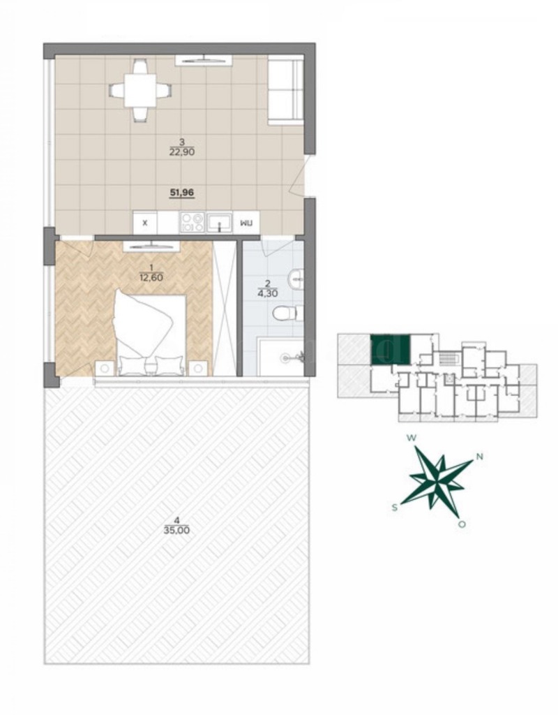 покривна тераса - 35 кв.м.
