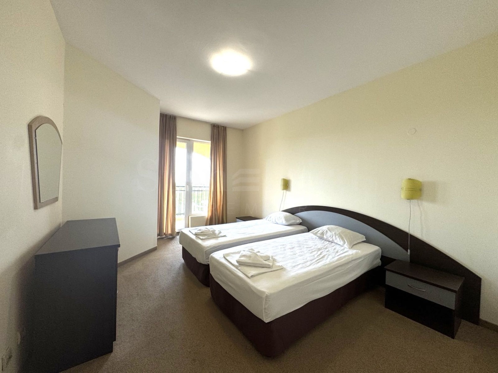 Представяме за продажба двустаен апартамент с морска гледка в затворен комплекс, разположен сред зеленината на парка в Златни пясъци. Отлична локация в близост до автобусна спирка, с много бърз достъп до главния път за Варна и на около 15 минути пеша до плажа на курорта.