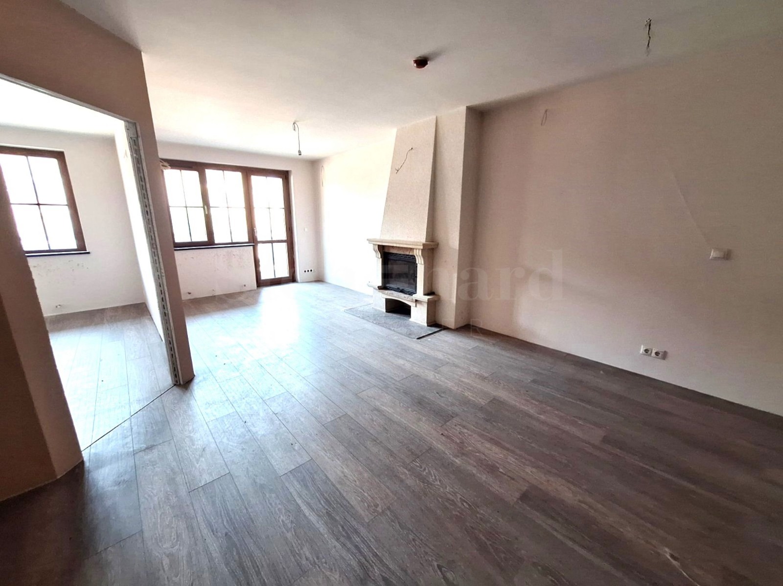 Просторна всекидневна с балкон и каминa уют и топлина през зимата;