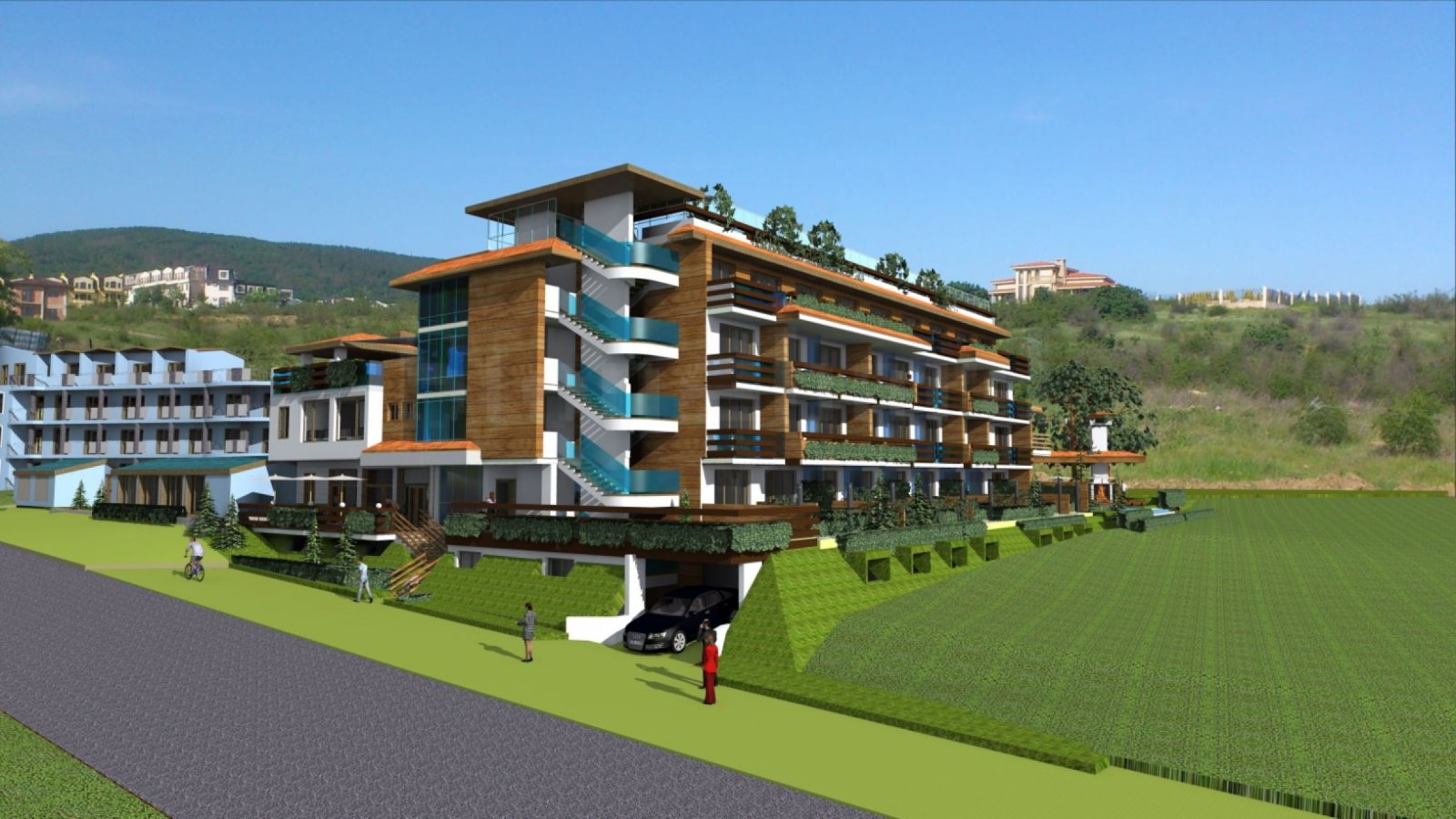 Комплексът е предназначен за целогодишно живеене, с басейн и барбекю зона на територията си. Сградата е проектирана на 4 етажа с 20 апартамента, от които студиа, двустайни и тристайни жилища с площ от 54,54 кв.м до 119,12 кв.м и прилежащи складови помещения.