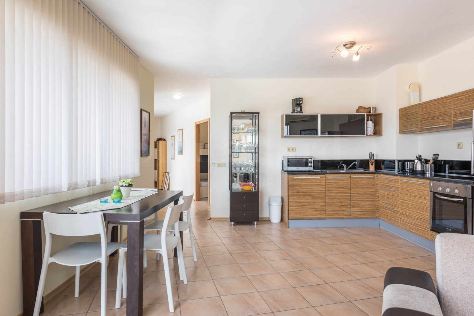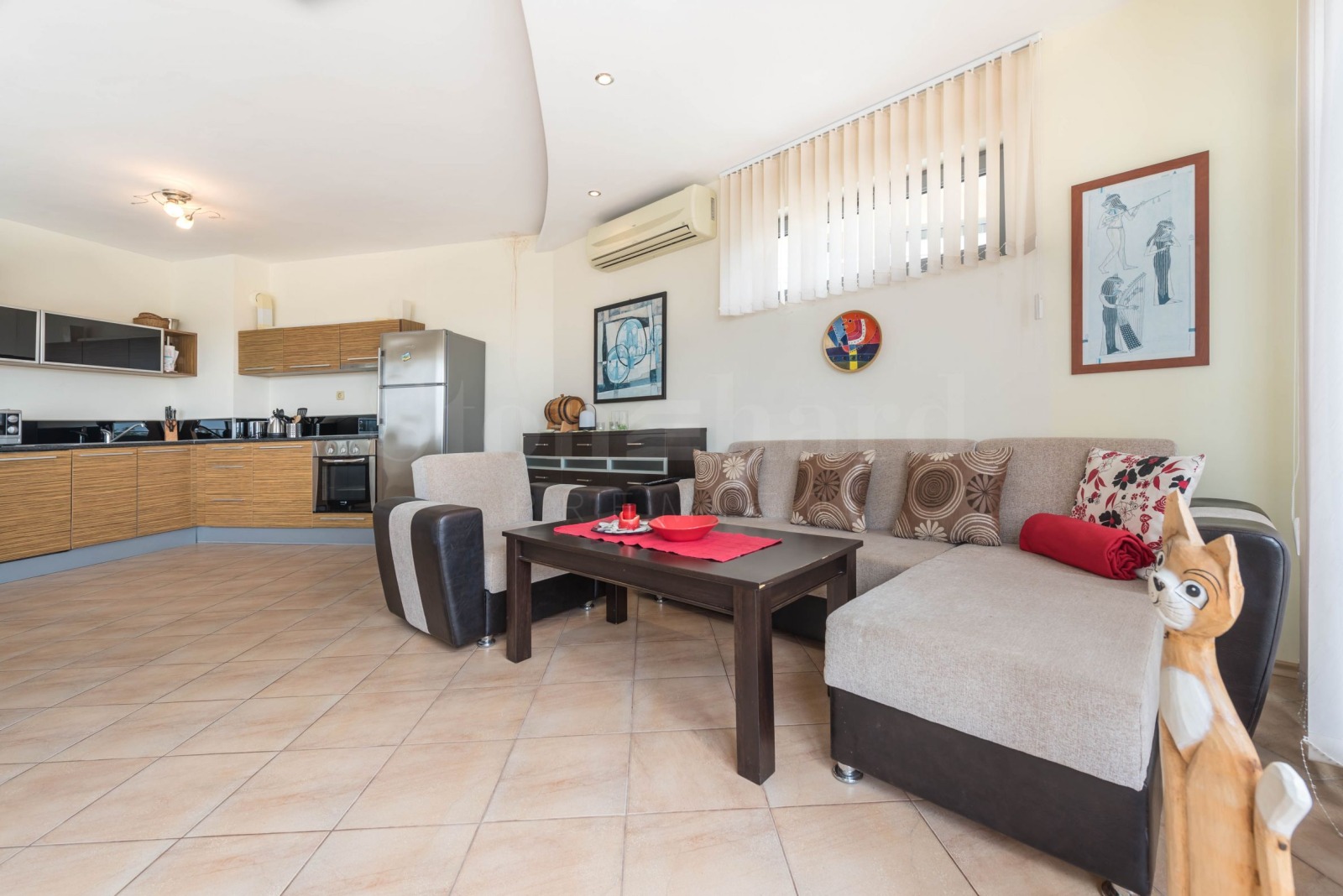отлично поддържани общи части и зелени площи.Апартаментът е напълно обзаведен и оборудван с всичко необходимо за живеене като мебели и ел. уреди. Подходящ е както за целогодишно живеене, така и за отдаване под наем през летния сезон.