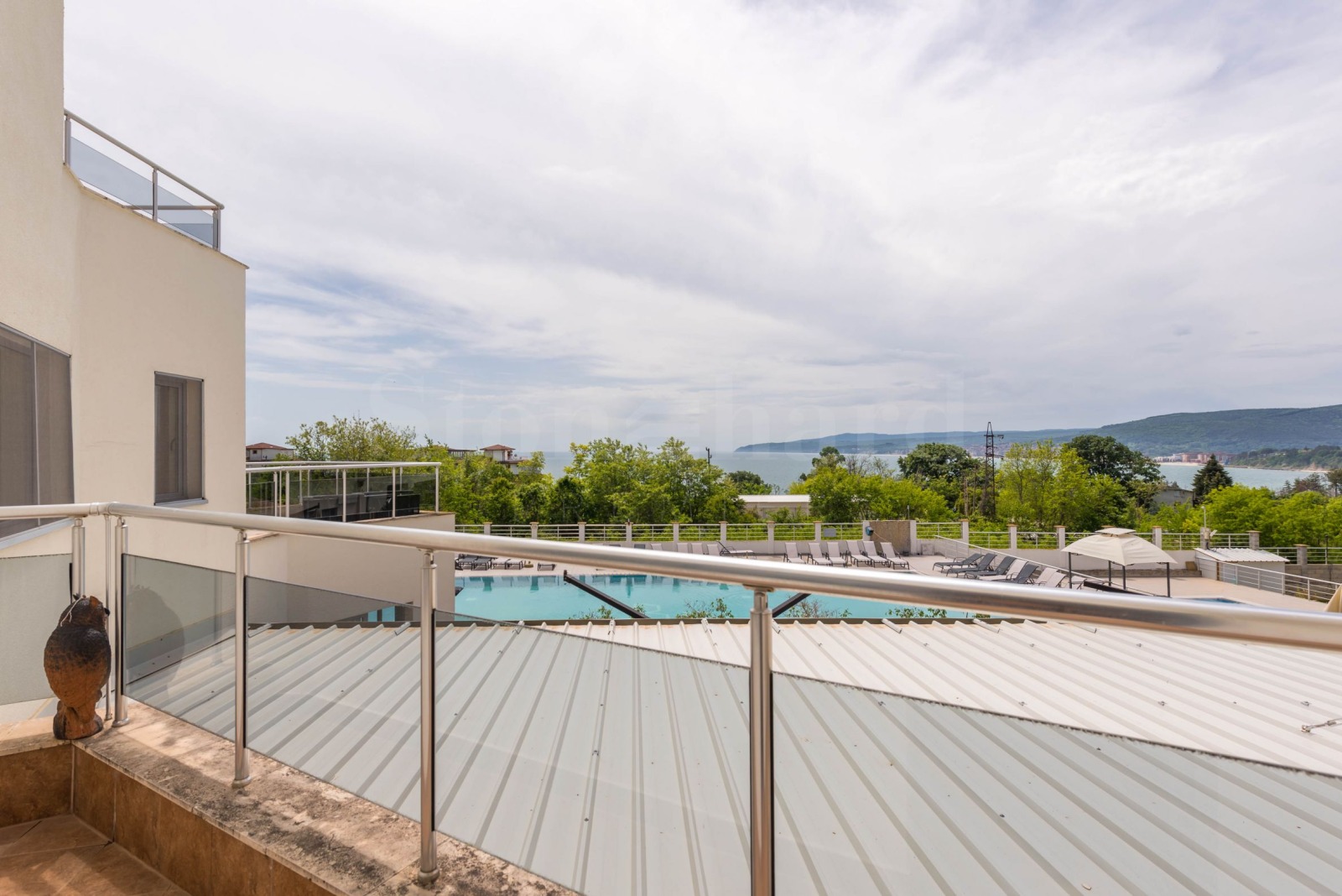 голяма тераса с място за отдих и красива гледка към морето и басейна.Удобства на територията: