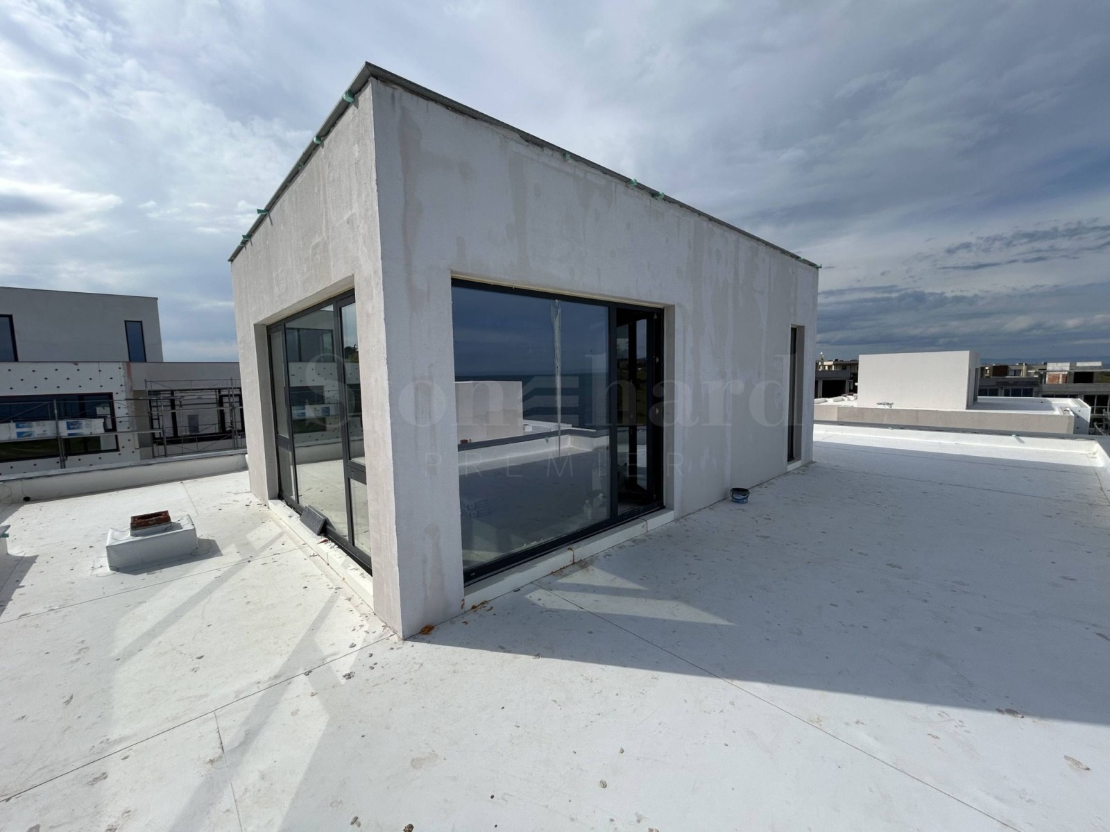 Етаж 3 - лятна кухня с голяма панорамна тераса.Вилата се издава в степен на завършеност по БДС (на шпакловка и замазка), с висок клас дограма Reynaers CS, с външна интегрирана топлоизолационна система.