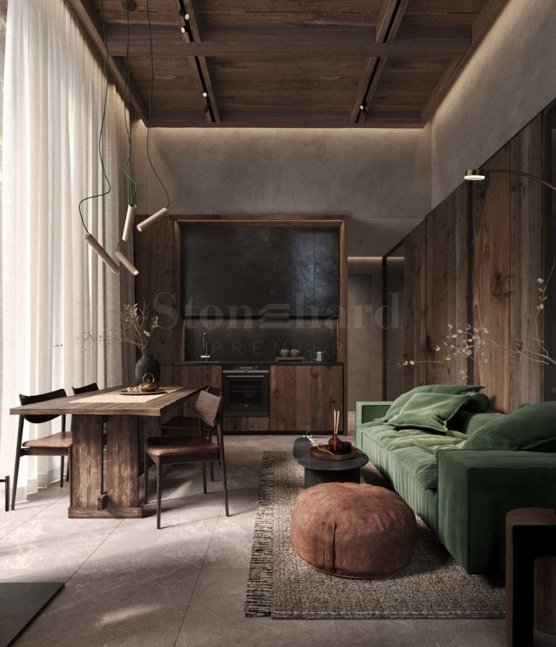 Жилището с обща площ от 30 кв.м е разположено на 1-ви етаж от 1 в самостоятелна вила с панорамни прозорци и собствен вътрешен двор, което Ви позволява да се наслаждавате на природата беспрепятствено.