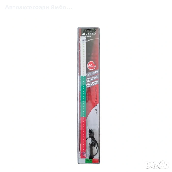 Тази 60-сантиметрова диодна лента свети в ярките цветове на бялото, зеленото и червеното, подредени както в българското знаме. Подходяща е за автомобилен тунинг, декорации по време на национални празници, патриотични събития или просто за стилен акцент у дома.