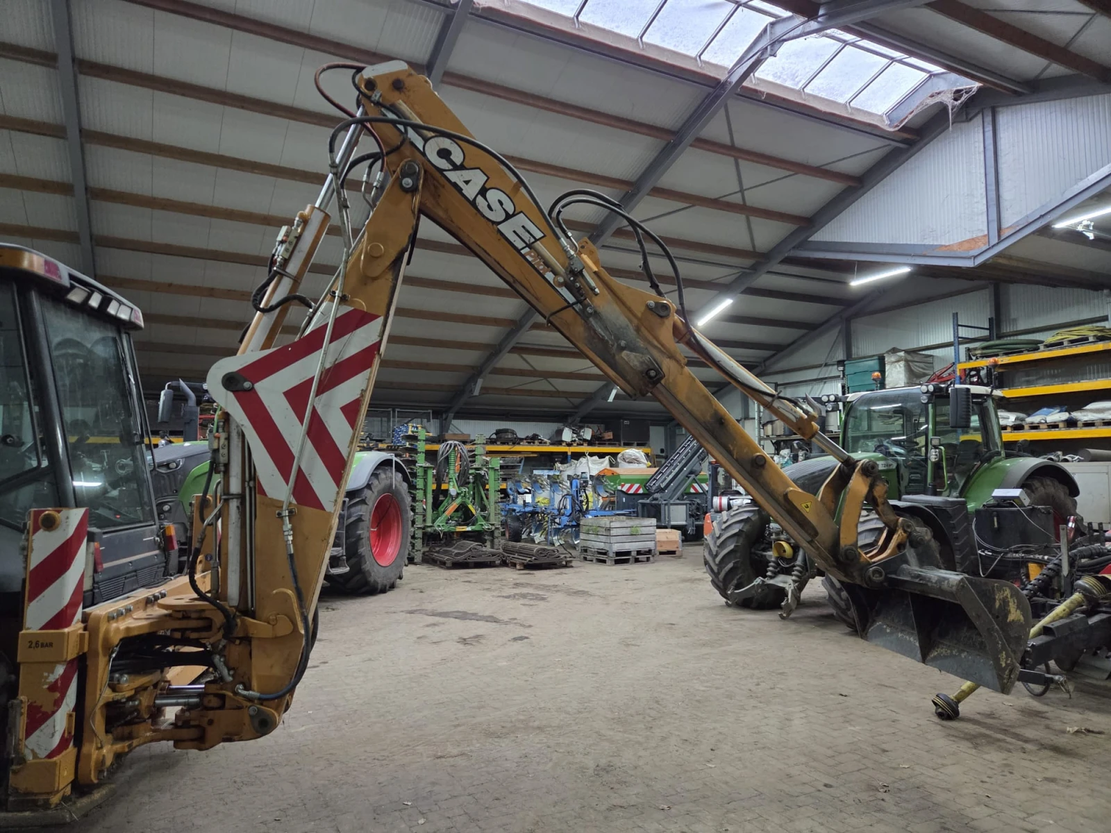 Комбиниран багер CASE 695SR-4PS Кат. ном. BTX17653 Марка / Модел: CASE 695SR-4PS Вид: комбиниран багер Година на производство: 2007 Часове на употреба: 3327 ч Състояние: употребяван Тегло Работно тегло (кг): 8600 кг Двигател Марка двигател: CASE Модел двигател: CASE 445TA Гориво: дизел Мощност (к. с. ): 112 к. с. Мощност (kW): 82 kW Работни характеристики багерна уредба Дълбочина на копаене (мм): 5800 мм Хоризонтален обсег (мм): 6900 мм Височина на разтоварване (мм): 4300 мм Сила на копаене на кофа ISO (kN): 63 kN Сила на разкъсване на ръкохватката (kN): 47 kN Работни характеристики челен товарач Височина на повдигане (мм): 3700 мм Височина на разтоварване (мм): 3000 мм Товароподемност (кг): 3400 кг Обем на челната кофа (м³ ): 1. 1 м³ Ходова част Тип ходова част: колесна Задвижване: 4x4 Оборудване Брой кофи: 2 Бързосменник: не Кабина Климатик: да Габаритни размери Дължина (мм): 5900 мм Ширина (мм): 2400 мм Височина (мм): 3900 мм