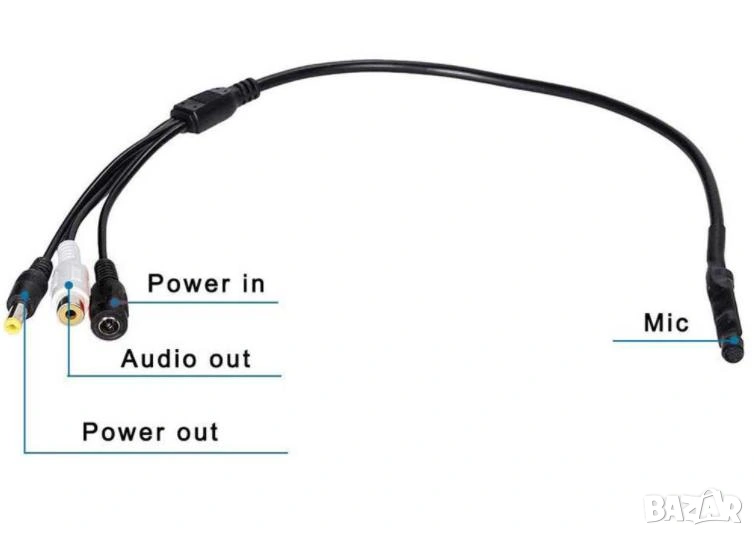С допълнителен DC изход, като по този начин можете да използватео едно и също захранване за охранителната камера и микрофона едновременно!