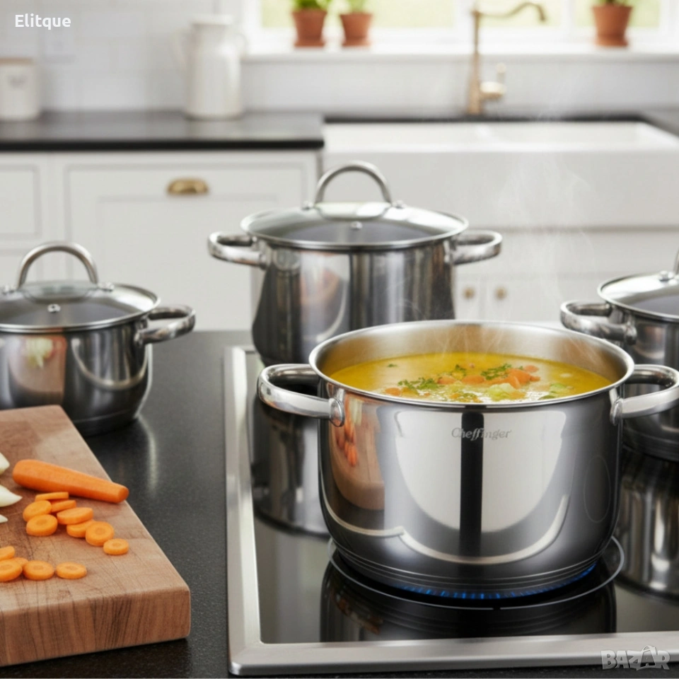 Комплект тенджери Cheffinger – 8 части инокс с капаци, за всички видове котлони