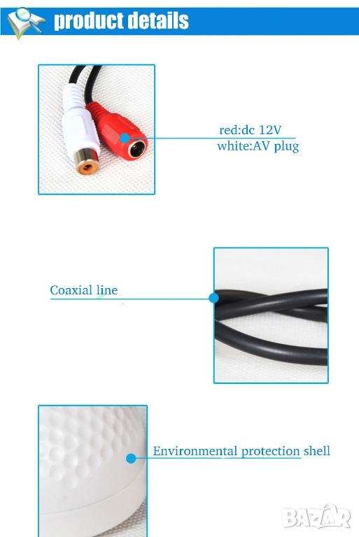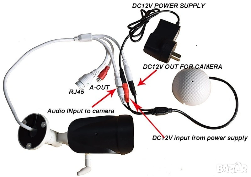 от 10 евро е Модел 2: 3в1 Аудио Мониторинг CCTV Микрофон с Потенциометър за Видеонаблюдение с Регулируема Чувствителност
