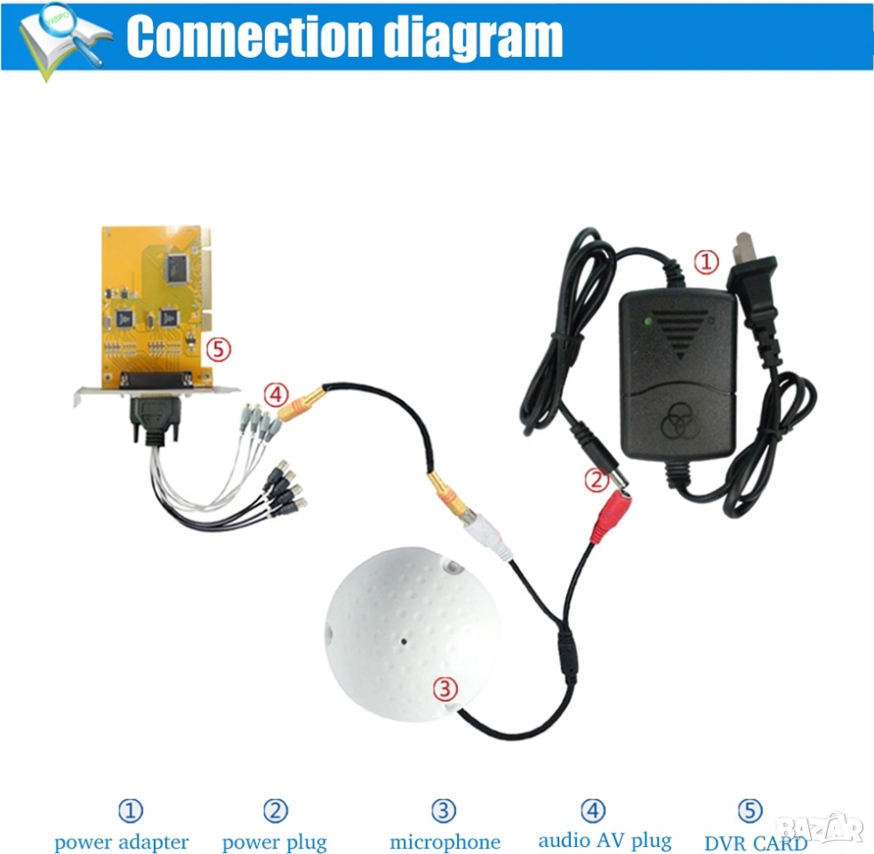 360° Цифров Микрофон за Видеонаблюдение с Висока Чувствителност Голям Обхват до 150 Квадратни Метра